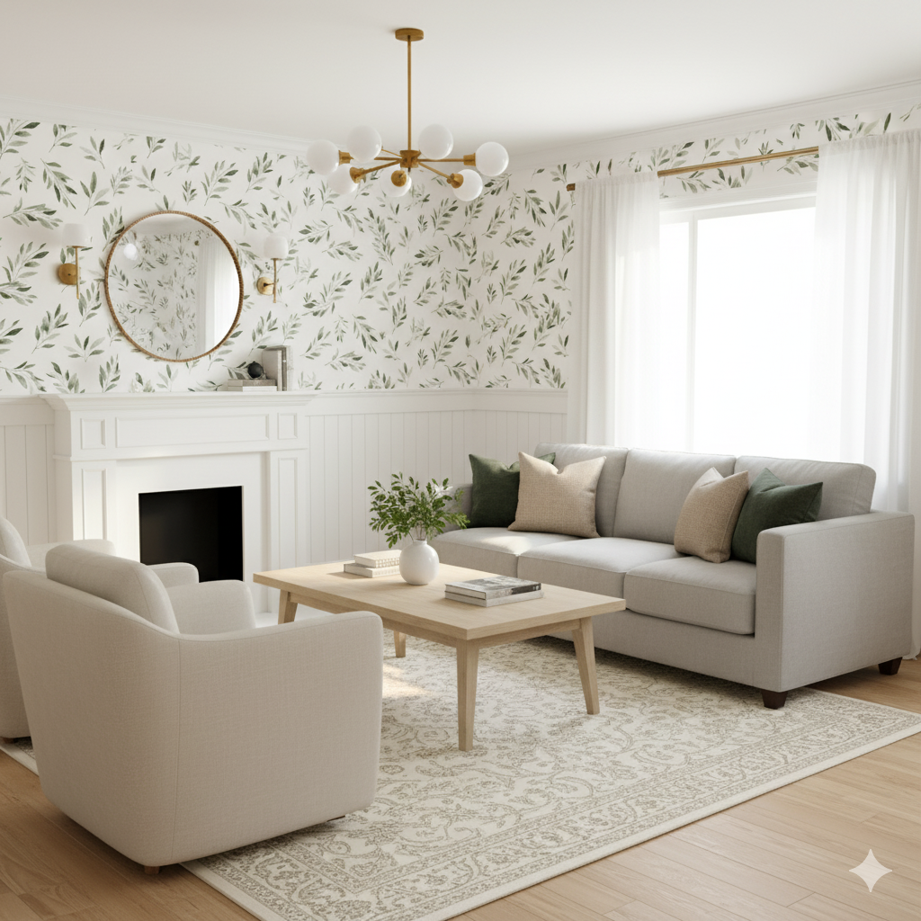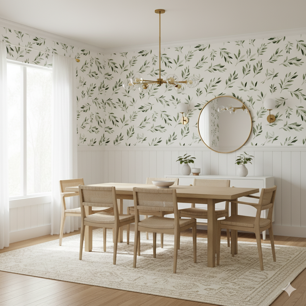 A refined geometric wallpaper that takes its cues from natural leaf structures. Outlined in warm taupe against a crisp white backdrop, each stylized leaf interlocks into a seamless, repeating formation that feels architectural yet organic. The repetition creates a sense of balance and flow, while the colorway ensures it remains versatile and understated. Marrowleaf excels in transitional interiors where traditional motifs meet modern minimalism. It works particularly well in hallways, bathrooms, or kitchens where subtle patterning enhances without overpowering. The organic geometry appeals to those who want nature’s influence in their interiors but prefer clean lines and contemporary execution.