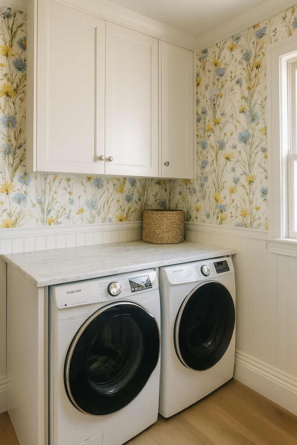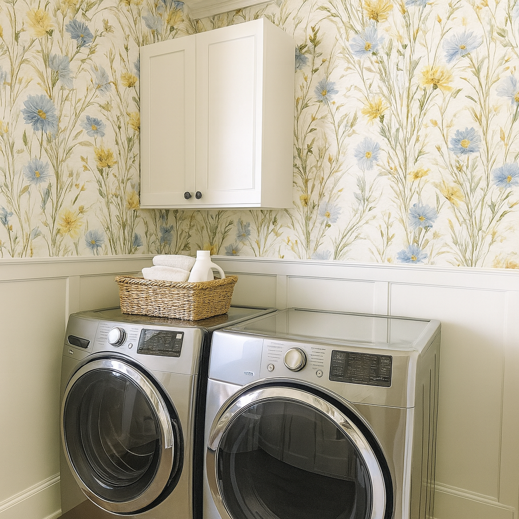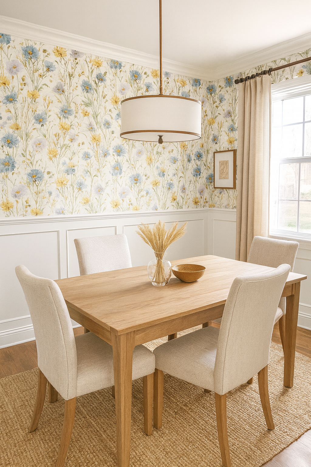 Impressionistic strokes of cornflower blue, buttery yellow, and soft lavender form a whimsical field of wildflowers. Light grasses weave vertically through the composition, echoing the feel of a gentle breeze through a sunlit meadow. Painterly but light-handed, this design — “Meadow Flicker” — is ideal for spring textiles, romantic apparel, or stationery lines.