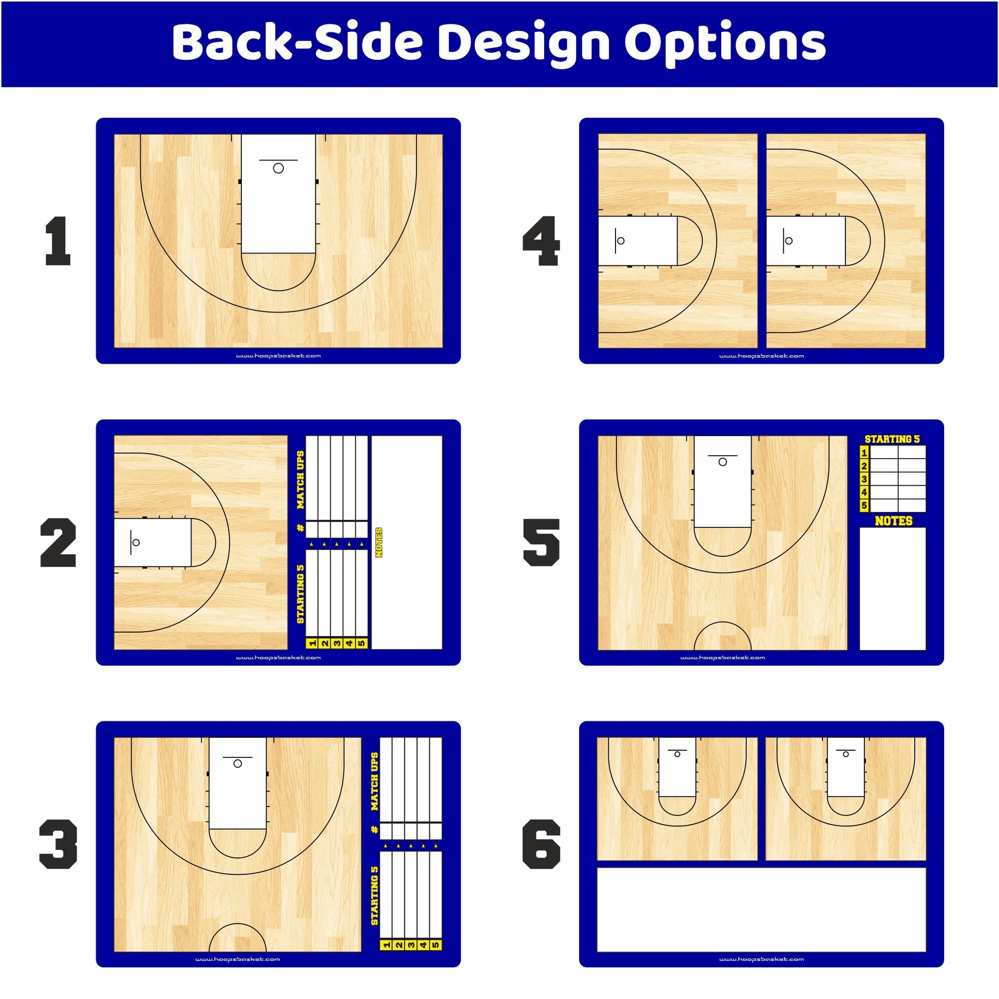Choose from three different sizes and personalize your board with your name, color, and team logo. Six layout options on the backside allow maximum flexibility for your plays. Both front and back sides are fully customizable to match your team’s identity.