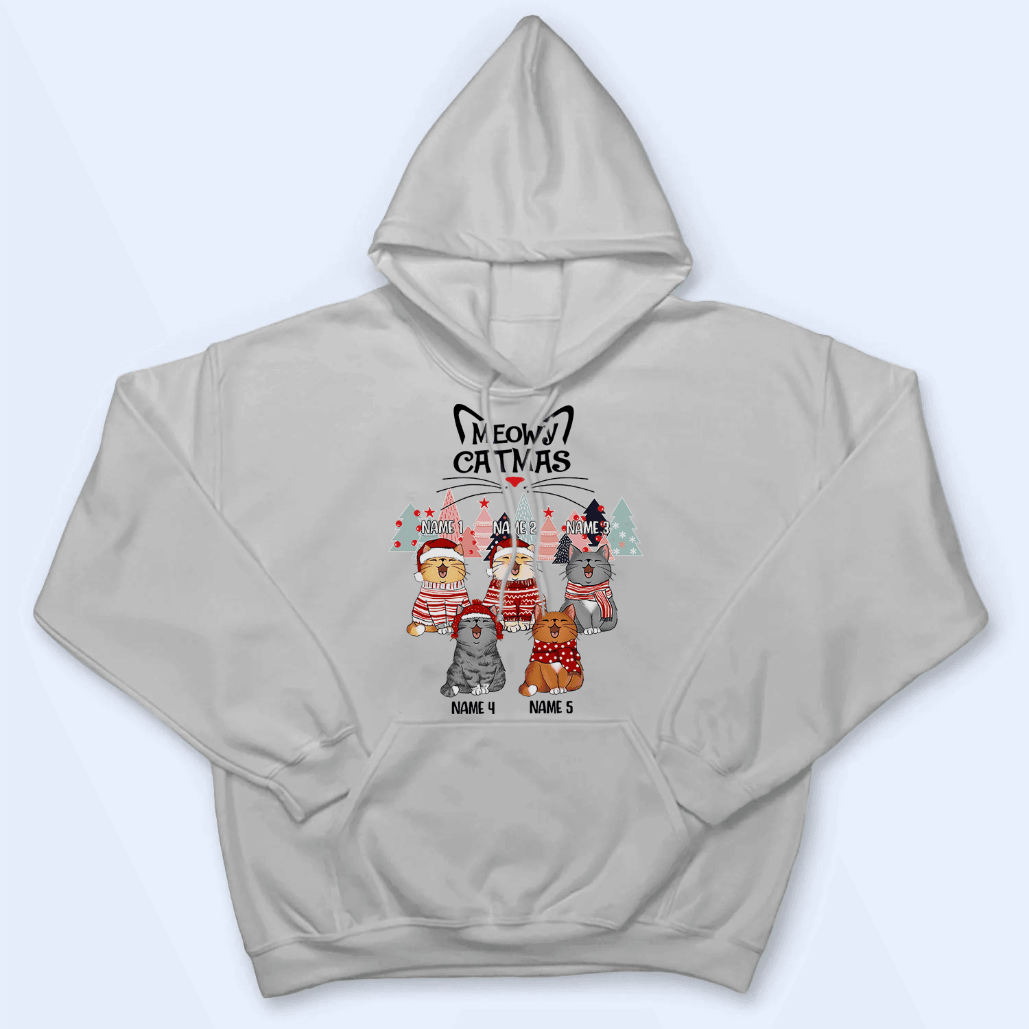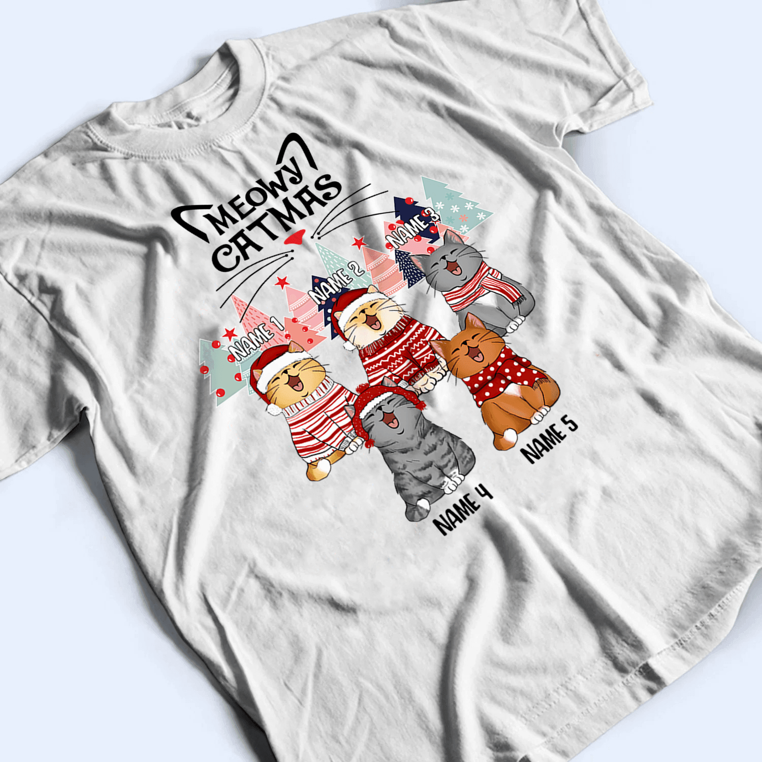 Meowy Catmas - Christmas Cat With Pine Trees - Personalized Cat Christmas T-shirt - Birthday, Loving, Funny Gift for Cat Mom, Cat Dad, Cat Lovers, Pet Gifts for Him, Her