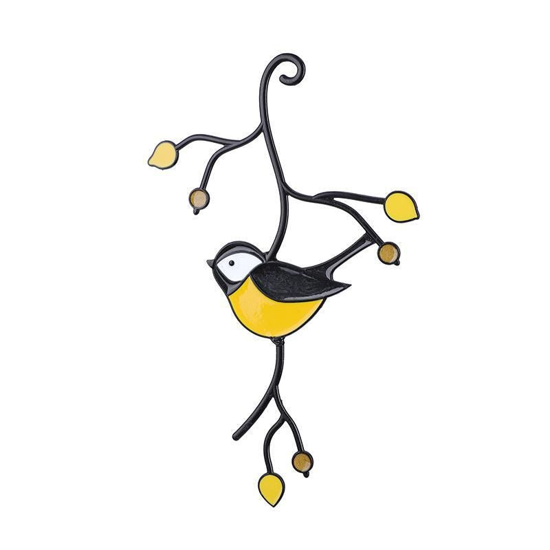 Metal Stained Bird Panel Glass Window Hanging Wall Decor Parrot Birds Art Pendant Wind Chimes Bird Ornaments Home Ornaments
