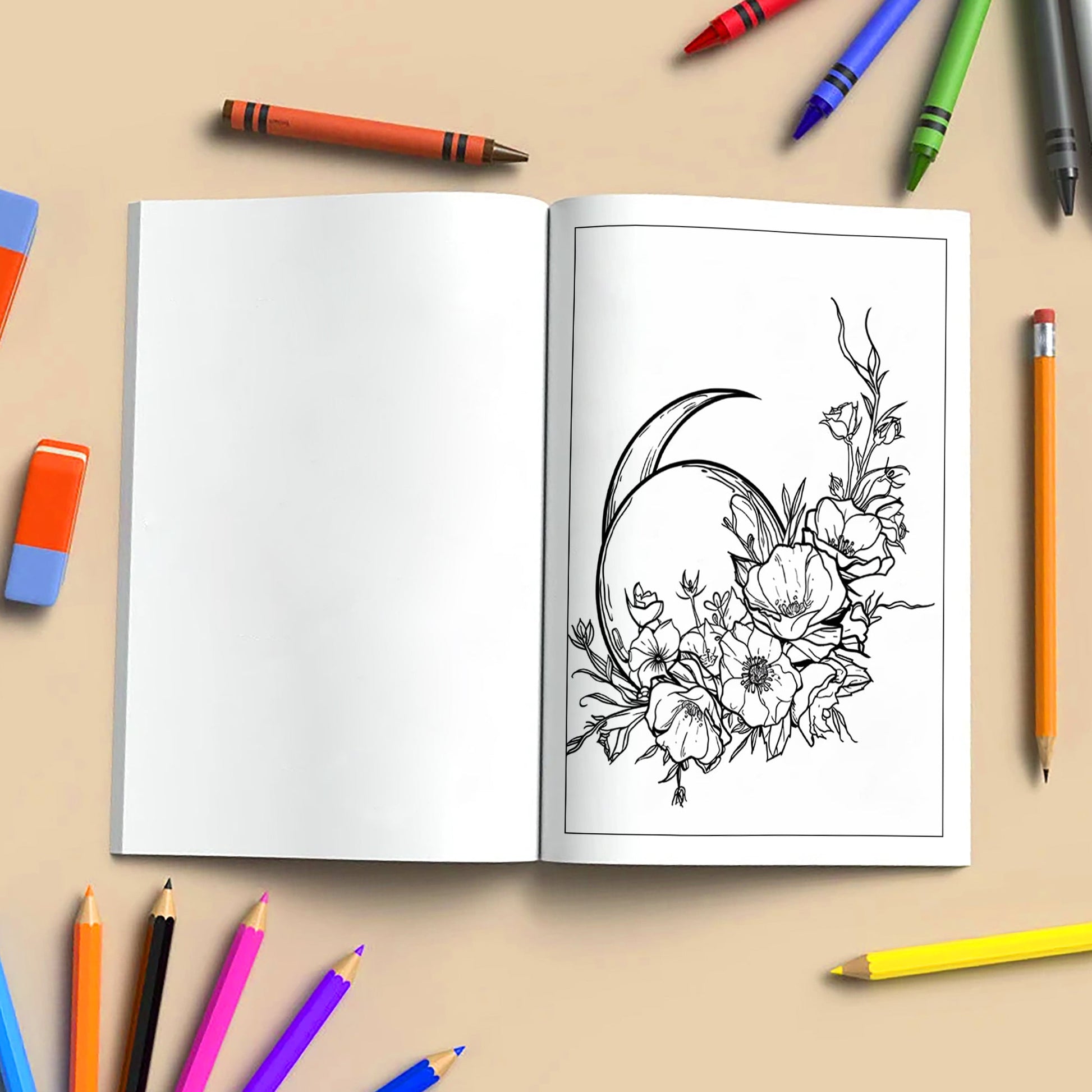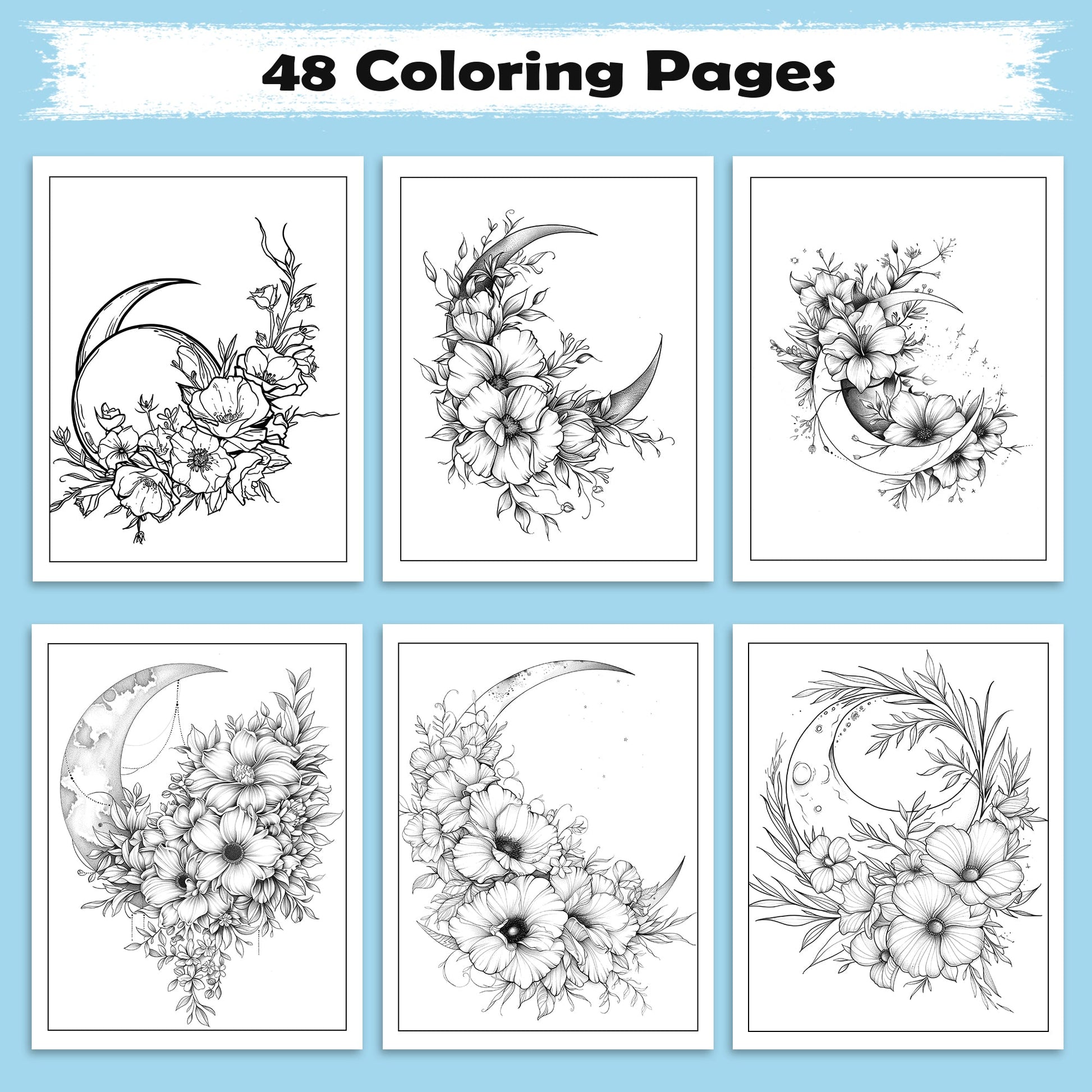 Midnight Blossoms Coloring Pages – 48 Pages – Enchanted Flowers, Starry Sky, Moonlit Scenes – For Adults
