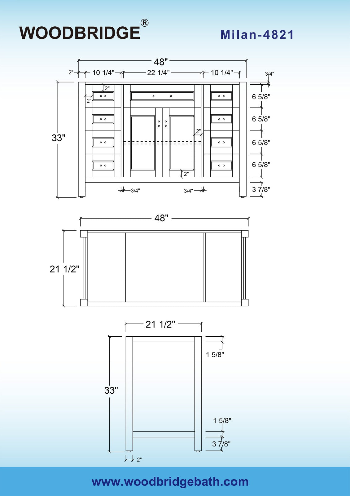 ? [DIMENSIONS]: Vanity dimensions: 48 in. L x 21.5 in. W x 33 in. H; Assembled dimensions with top and back splash: 49 in. L x 22 in.