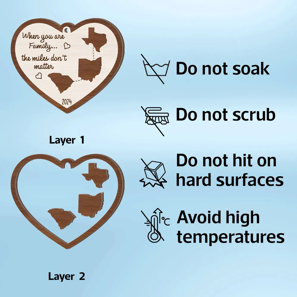 Miles Apart Long Distance Family Friendship State Map - Personalized Custom 2-layered Wood Ornament - Christmas Gift for Long Distance Family, Friendship Gift
