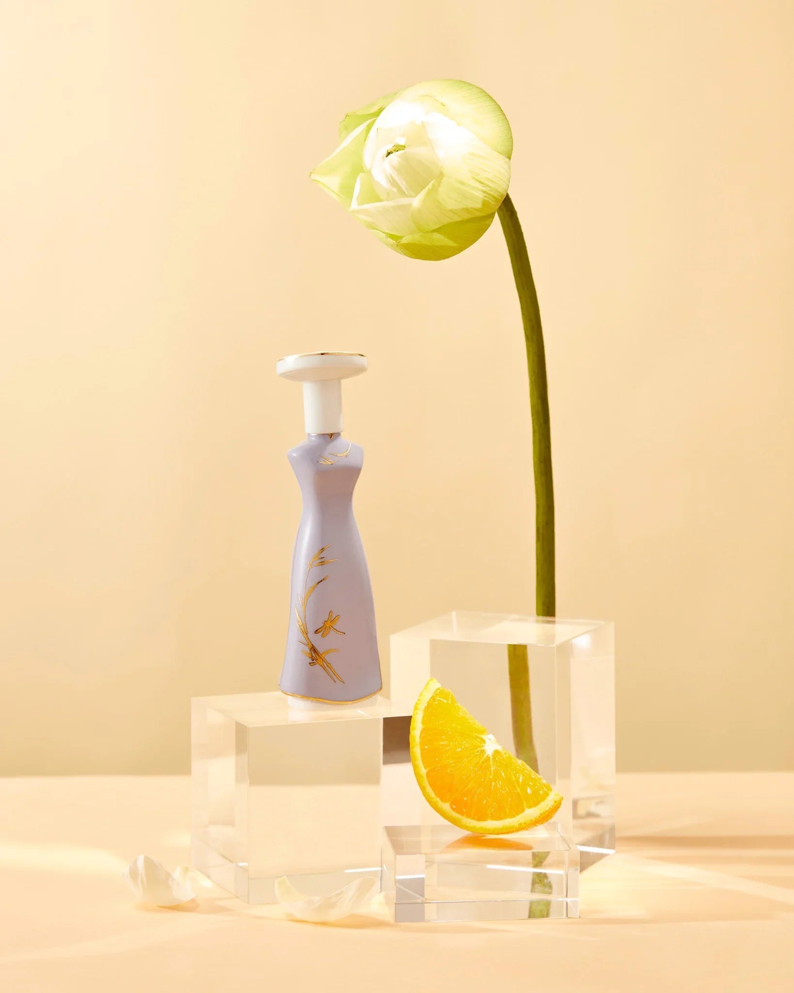 The perfume bottle is designed in the shape of a young woman from Hue in a traditional tunic with a scarf, along with luxurious and eye-catching packaging. The bottle is made from high-quality Minh Long ceramics, glazed with 2 layers, and the textures are completely hand-painted by artisans. The highlight on the bottle is 18k gold material full of class and value.