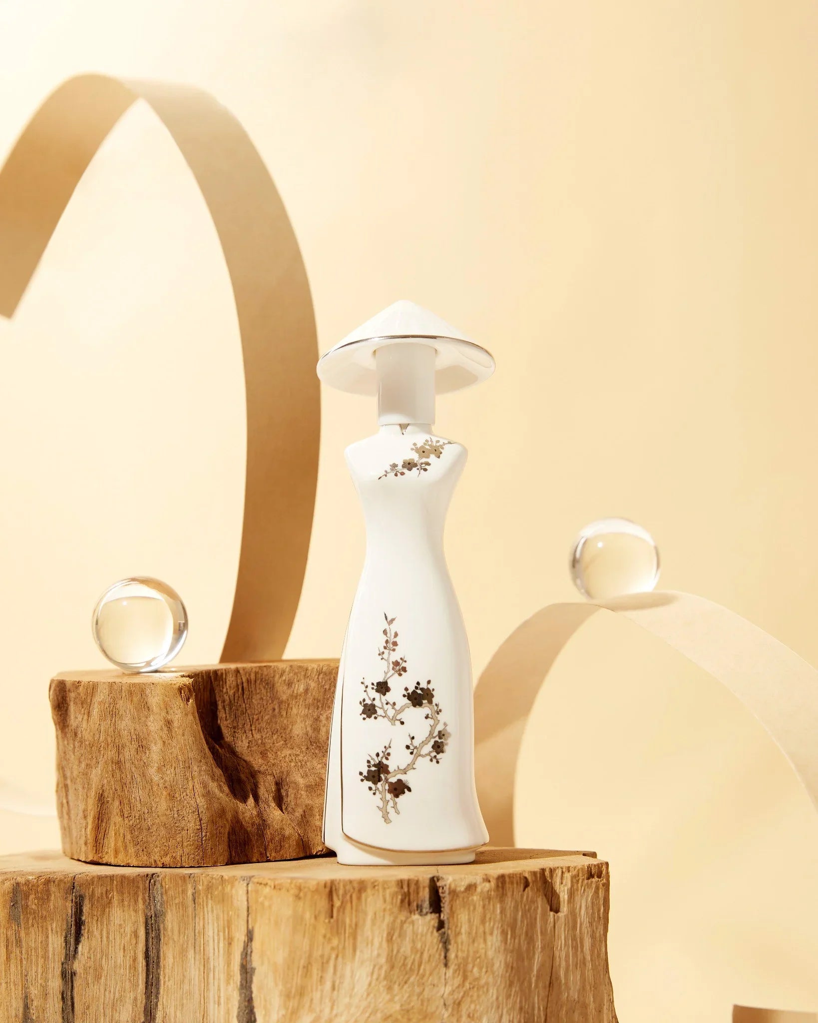 The perfume bottle is designed in the shape of a Saigon girl wearing a traditional ao dai and conical hat, along with luxurious and eye-catching packaging. The bottle is made from high-quality Minh Long ceramics, glazed with 2 layers, and the textures are completely hand-painted by artisans. The point on the bottle is a white gold material full of class and value.
