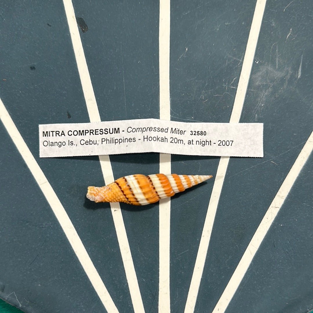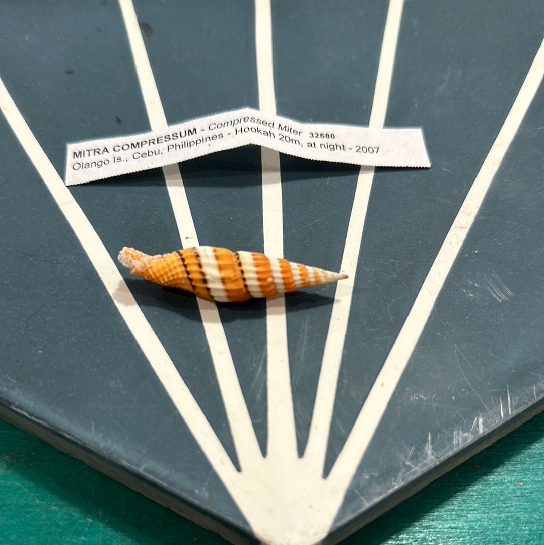 Add out unique coastal seashell the Compressed Miter to your collection. The vibrant orange color adds a pop to any room. Perfect for collectors looking to add a small but special piece to their collection.