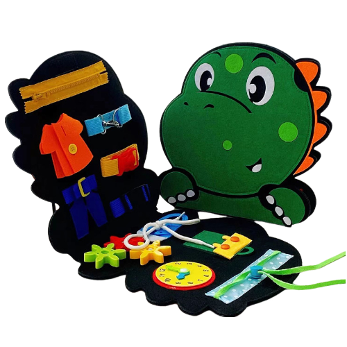Enhance your child's early education with our Montessori Felt Learning Board Toy. This dinosaur, animal themed busy board helps develop essential life skills through tactile play. Practice dressing and fine motor skills while having fun! Perfect for children's learning and development.