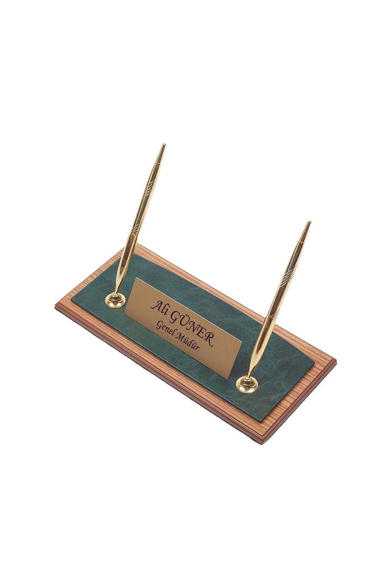 MOOG Star Leather Desk Set -Walnut Wood Combination -Double Document Tray - Green-11 PCS