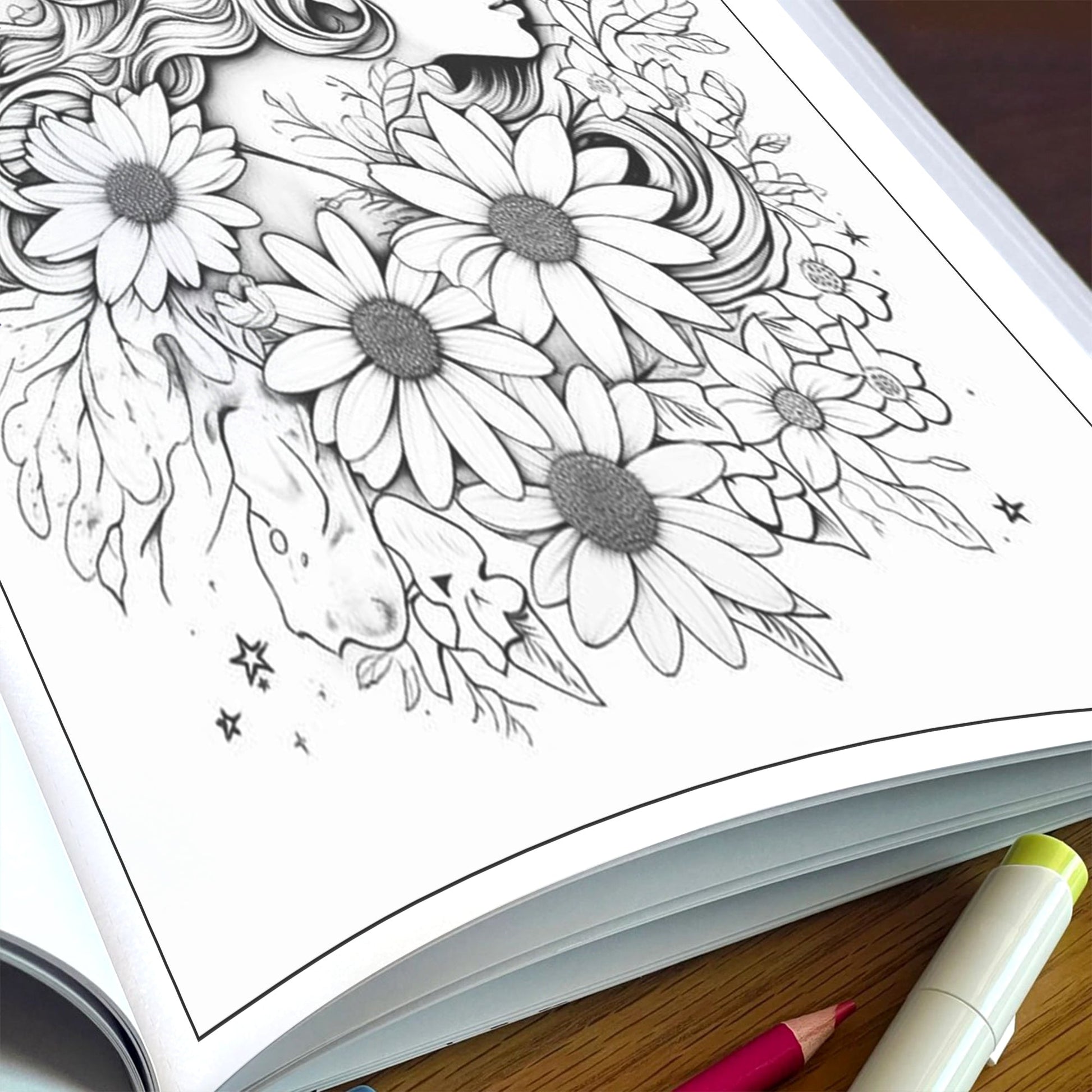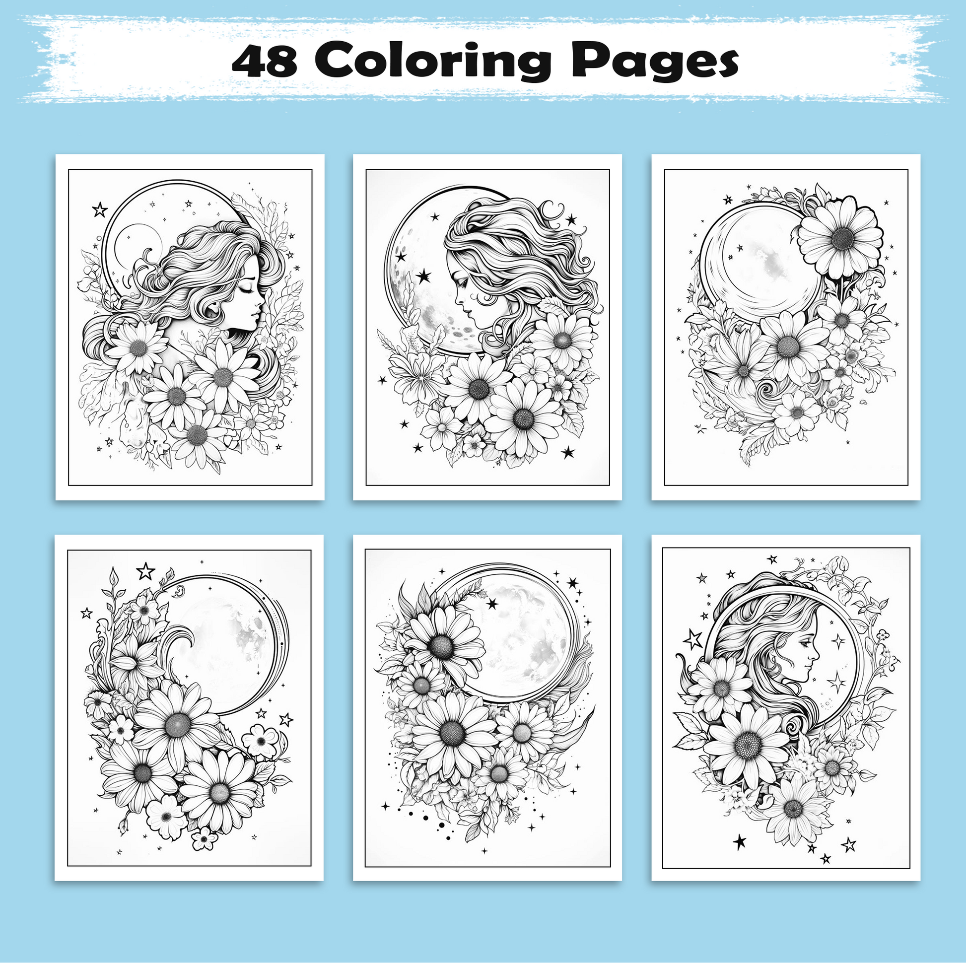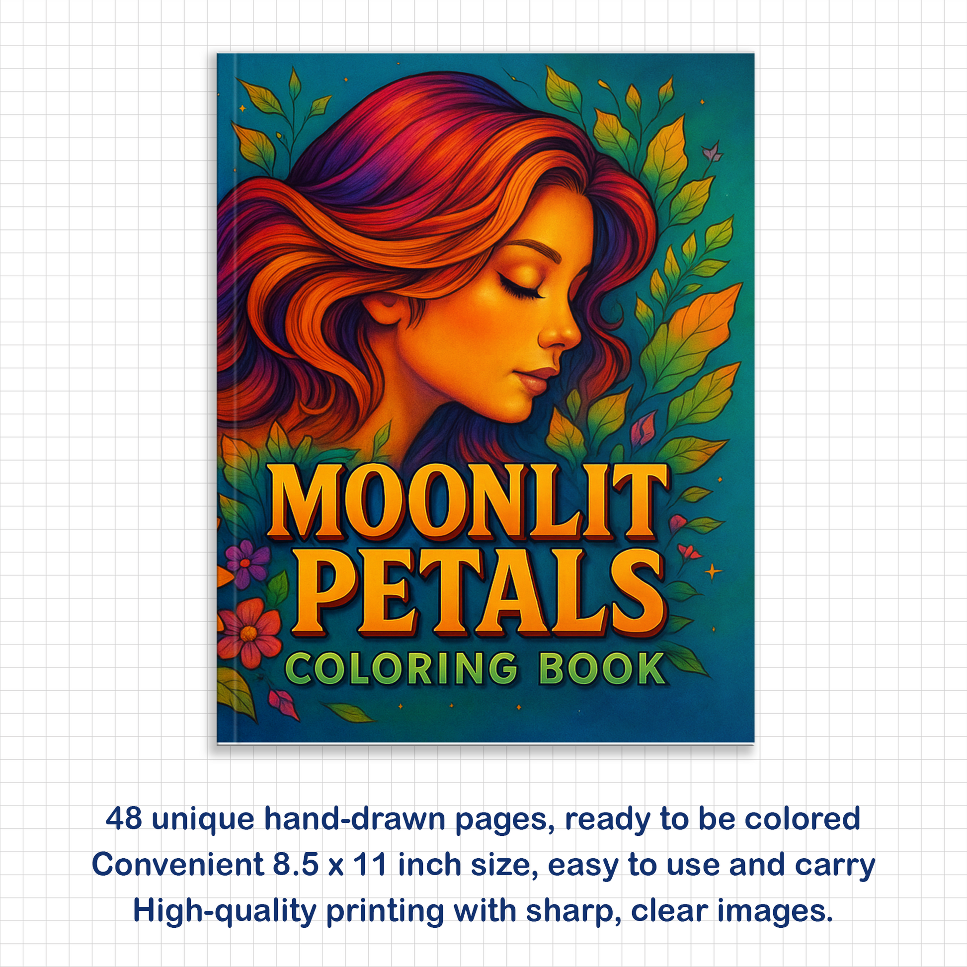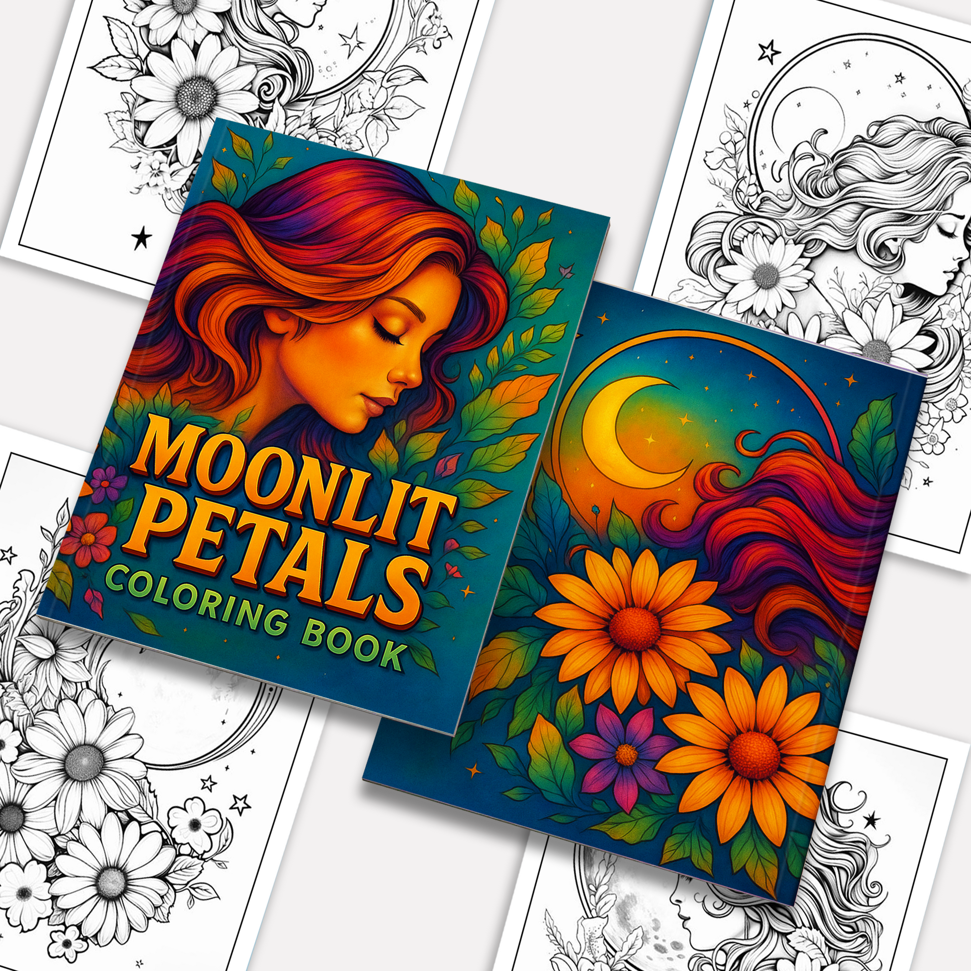 Moonlit Petals – Flower and Moon Coloring Pages – 48 Pages – Feminine, Magical, Nature-Inspired Beauty – For Adults