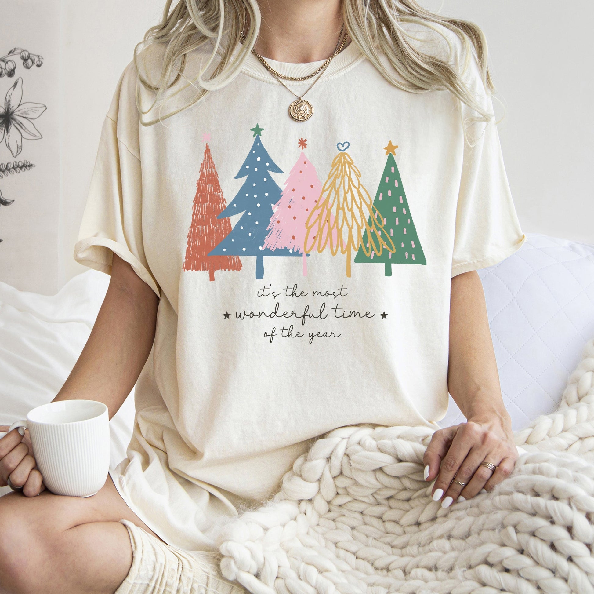 Make a statement this holiday season with the Most Wonderful Time Retro Christmas Trees, Colorful, Comfort Colors T-shirt. Perfect for any occasion, this shirt can be paired with jeans for a laid-back look or dressed up for a party. Don’t miss out on this festive essential; order yours today and spread the holiday cheer!