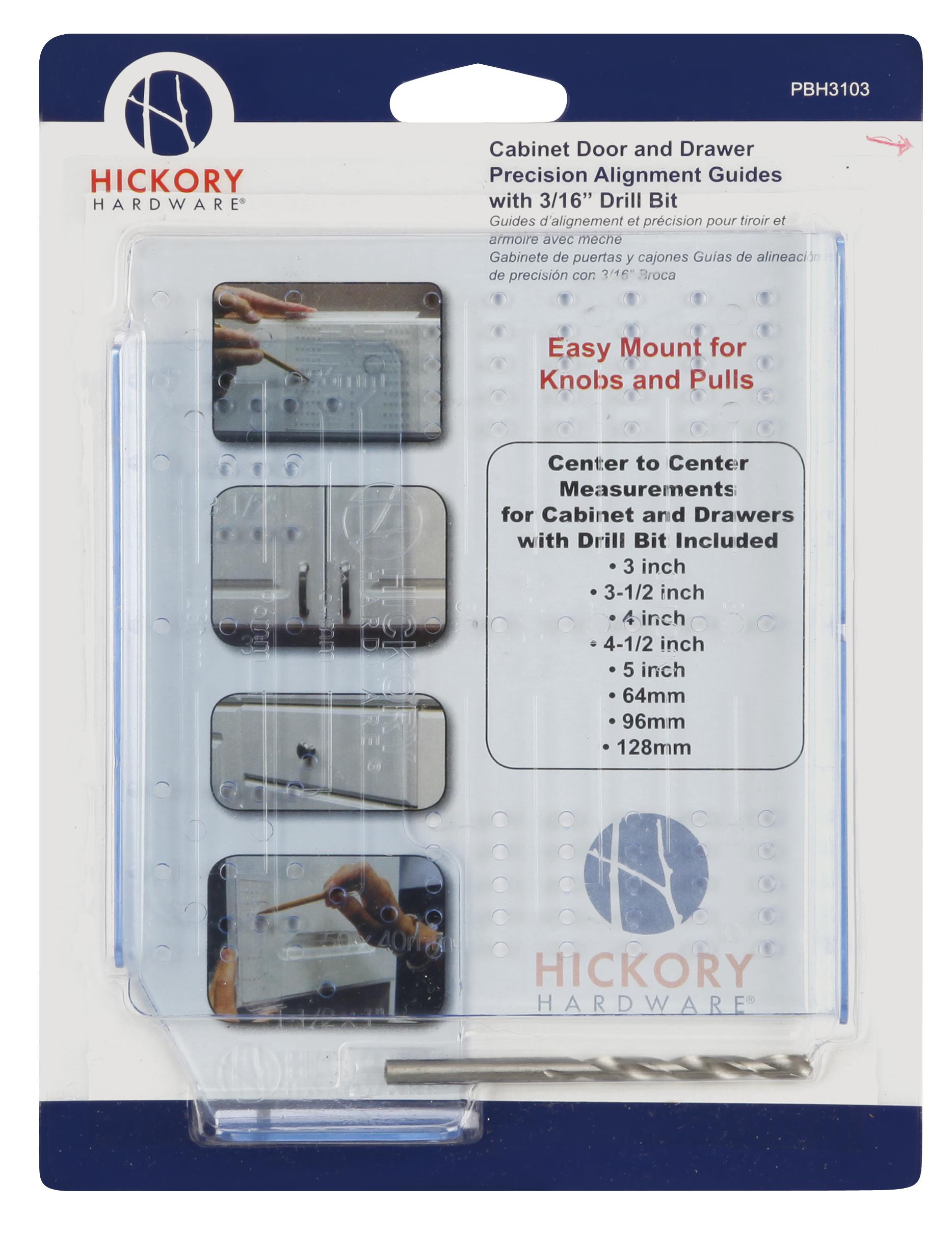 - One drawer alignment guide for center to center pull hole placement