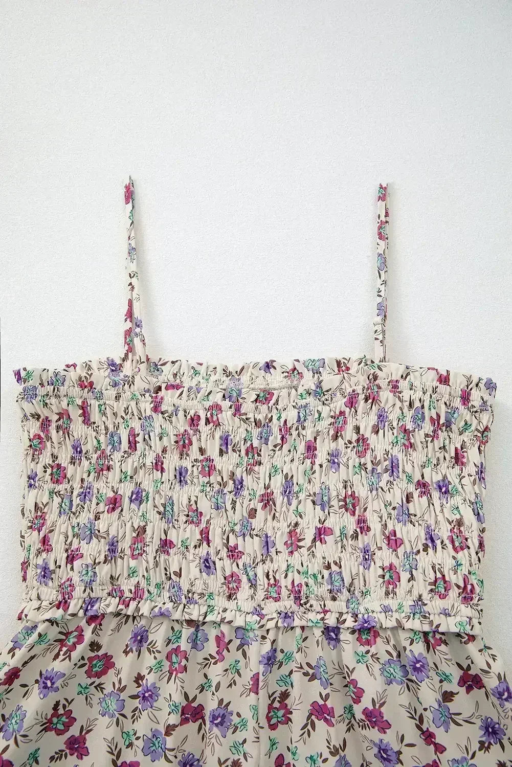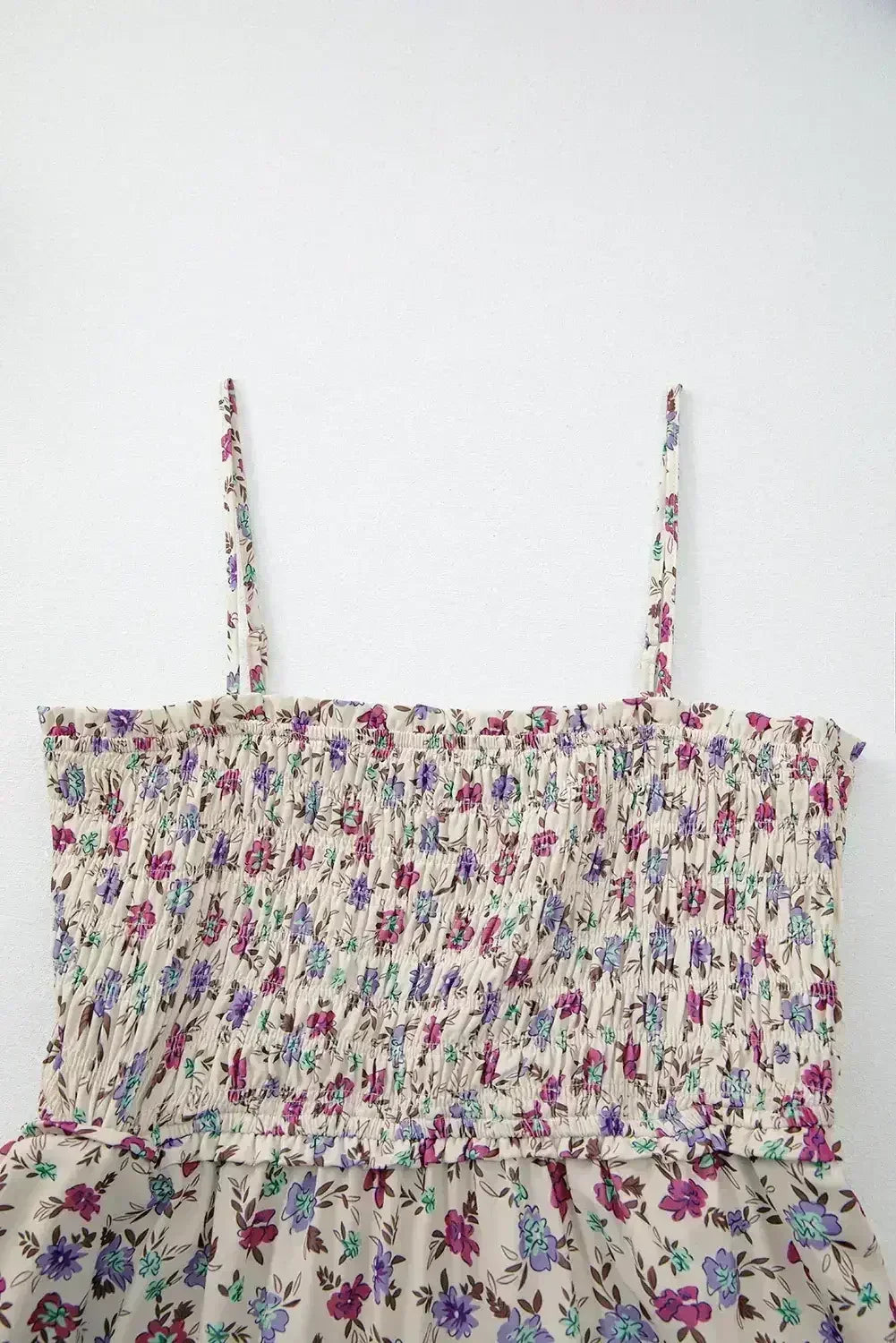 Multicolour Boho Floral Print Spaghetti Strap Flare Midi Dress