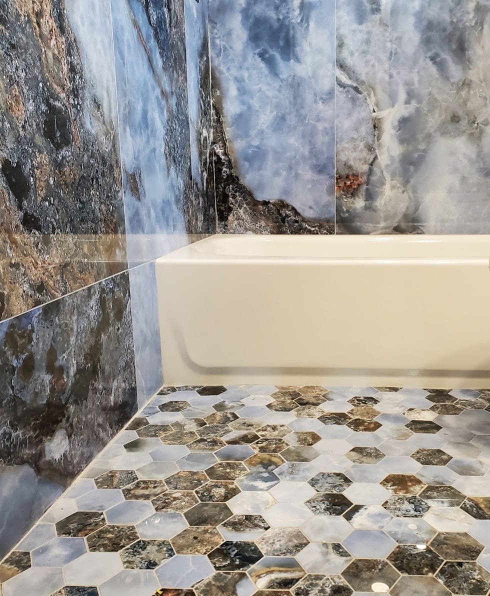 Mosaic: Hexagon Mesh mounted on a 12" x 12" sheet. Sold By Sheet ( 1 Sq/Ft)