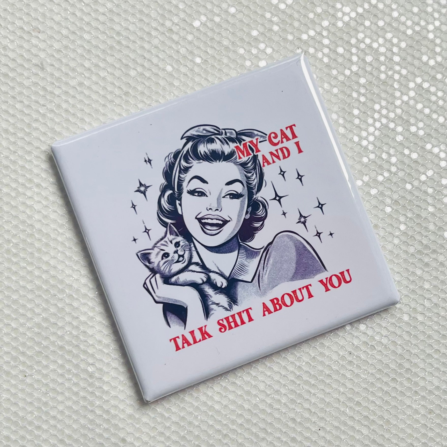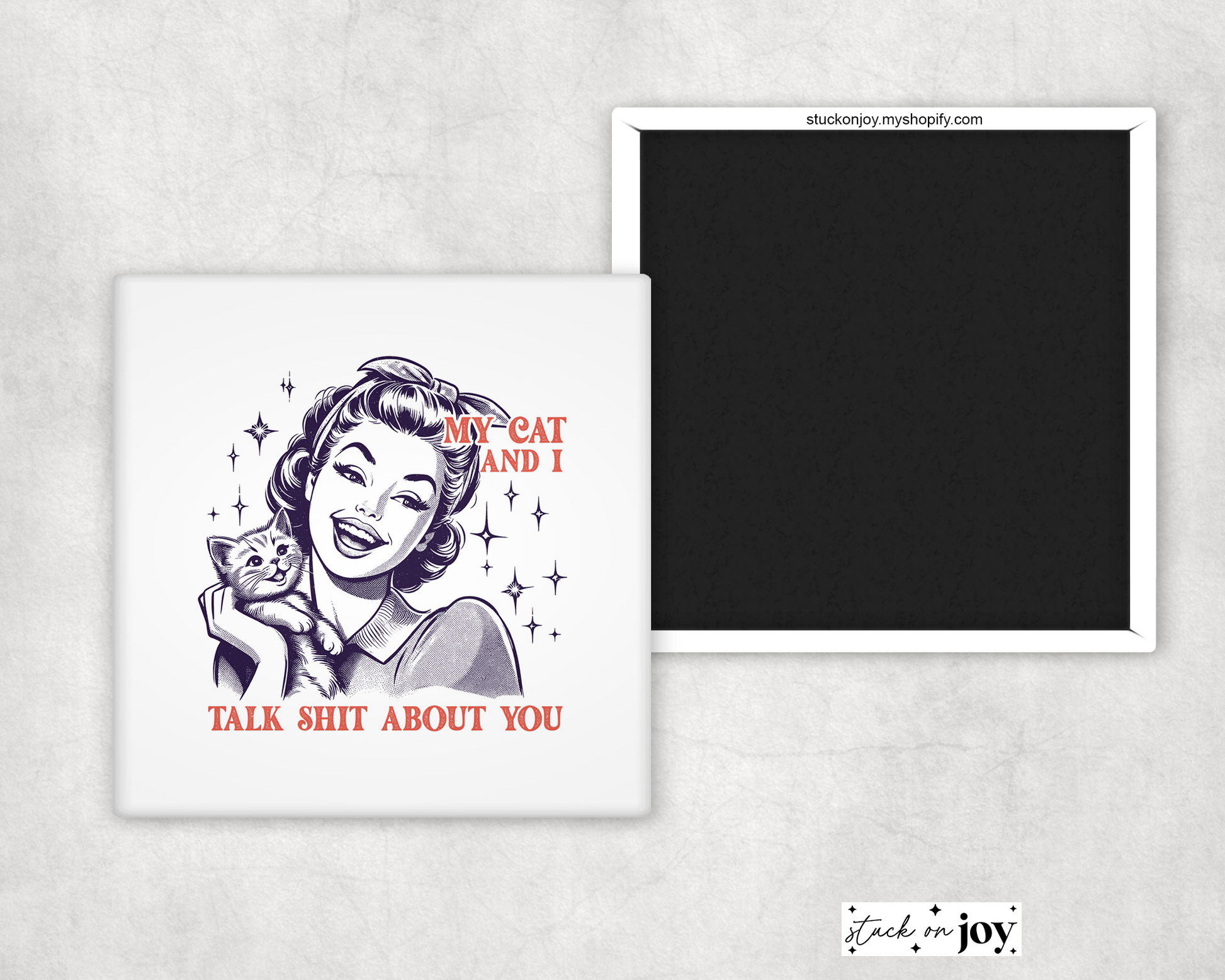 MY CAT AND I TALK SHI!T ABOUT YOU FUNNY 2"x2" MAGNET