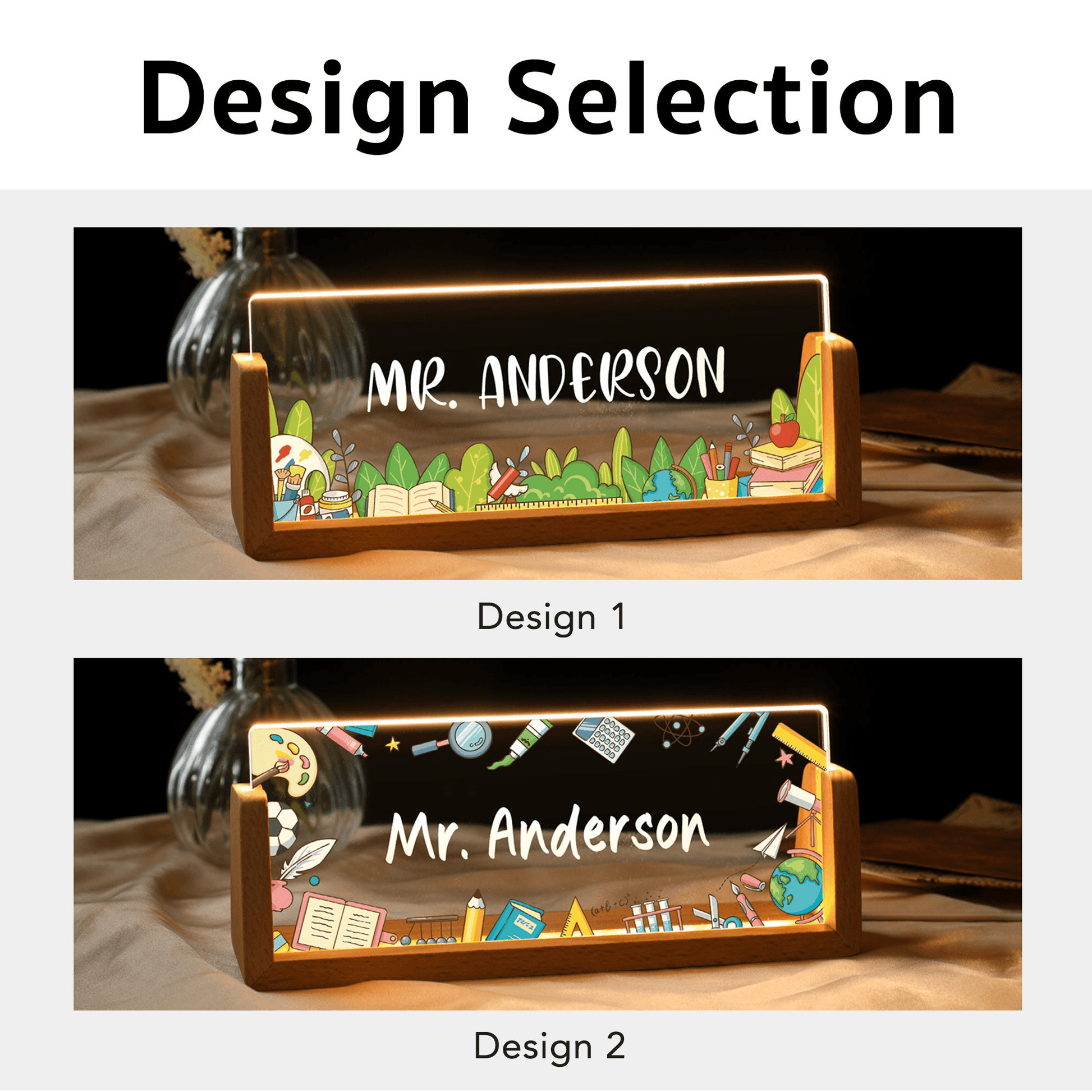 Name Desk Plate For Teacher - Personalized Acrylic Led Light With Wooden Base - Custom Gift For Teachers & Educators