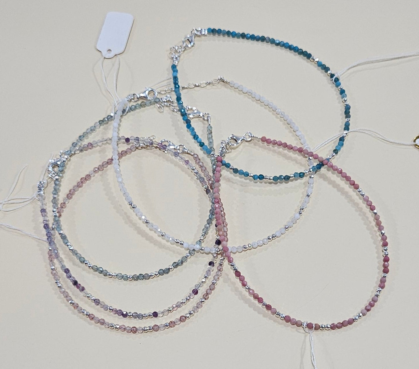 Elevate your style with our delicate natural gemstone anklet, designed for elegance and versatility. Featuring sterling silver findings and an adjustable 9-inch length with a 1-inch extender, this handcrafted piece is available in six stunning colors to match any look. Personalize your anklet further by adding one of our unique charms for a custom touch!