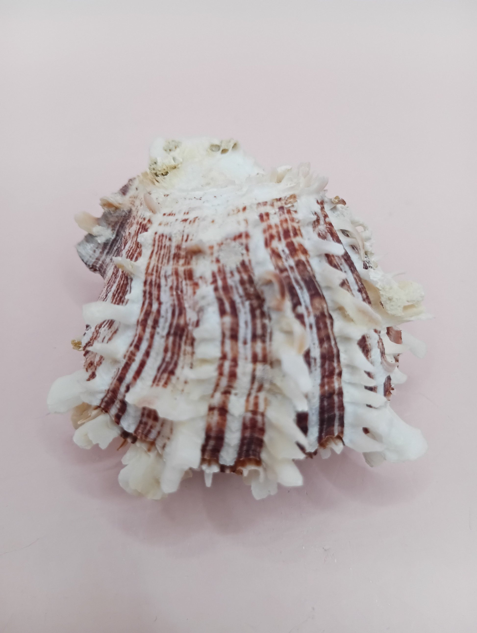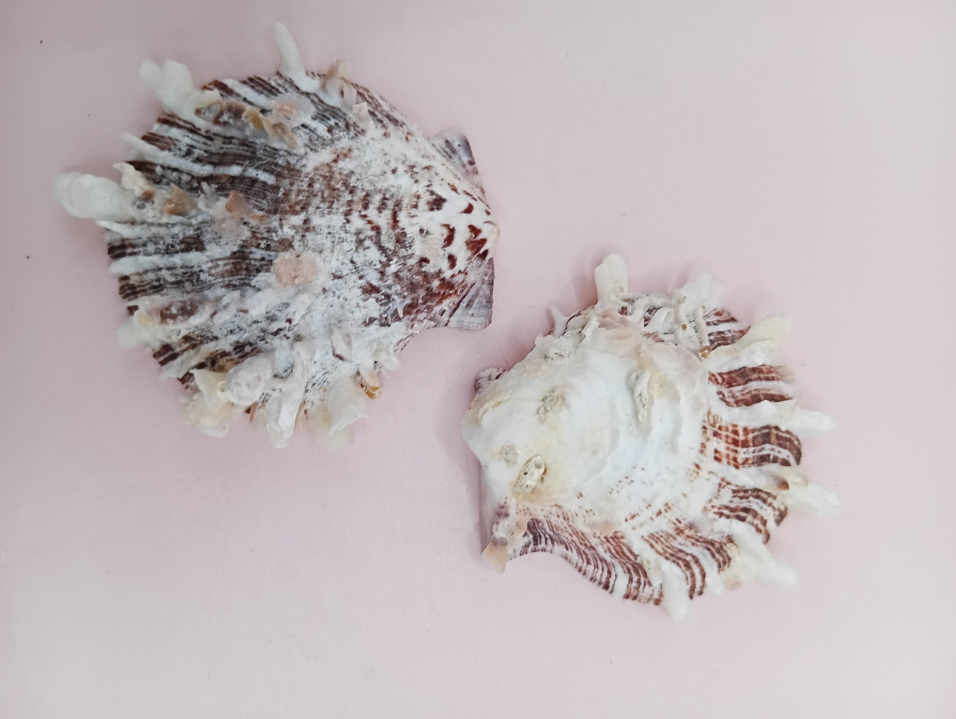 This natural Spondylus shell makes a striking addition to any coastal decor or shell collection. Known for its dramatic spines and vibrant texture, the Spondylus—also called the "thorny oyster"—is a unique marine shell with natural beauty and bold presence. This individual shell, no longer hinged, features rich cream and soft pink hues with an open form that highlights its intricate structure. Whether displayed on a shelf or added to a curated coastal collection, it’s a true conversation piece.