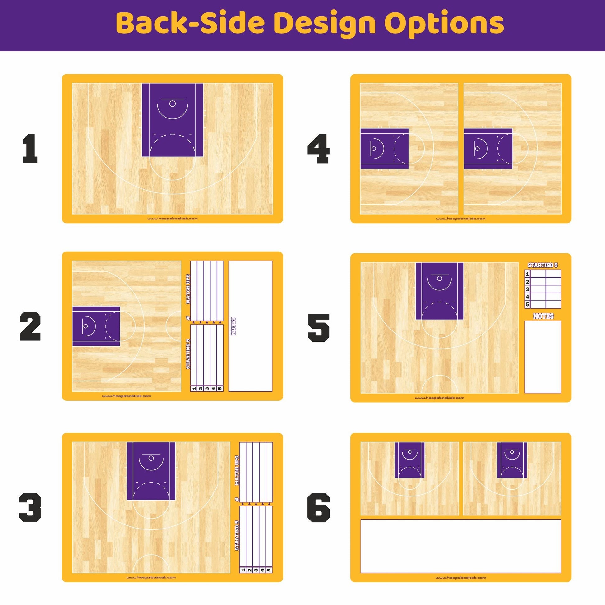 Choose from three different sizes and personalize your board with your name, color, and team logo. There are six options for the backside layout, giving you full flexibility for your play-calling needs. Both front and back sides of the NBA Custom Classic Magnetic Coaching Board 15.7 x 10.6 are fully customizable to match your team’s identity.