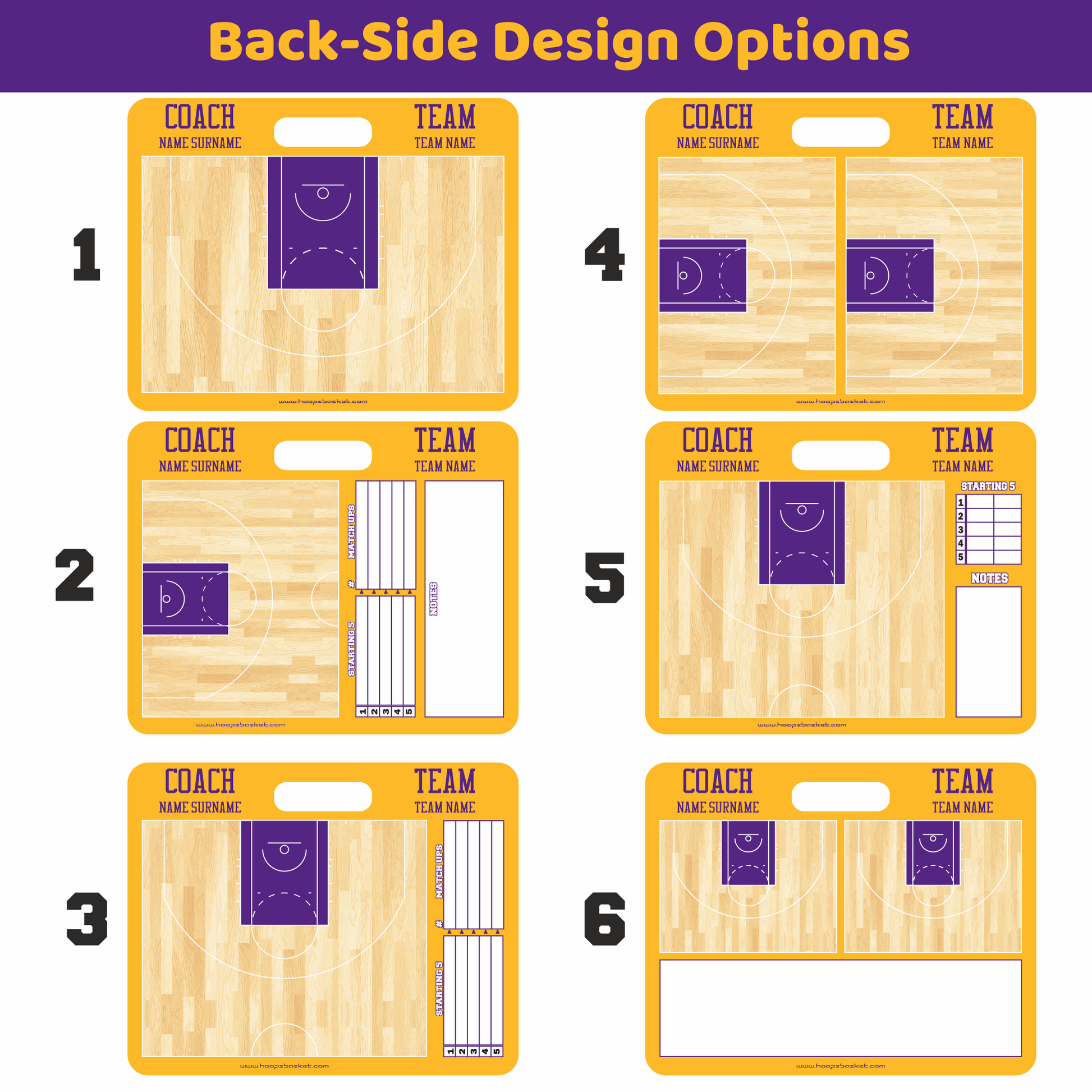 Choose from three different sizes and personalize your board with your name, color, and team logo. Six layout options on the backside allow maximum flexibility for your plays. Both front and back sides are fully customizable to match your team’s identity.