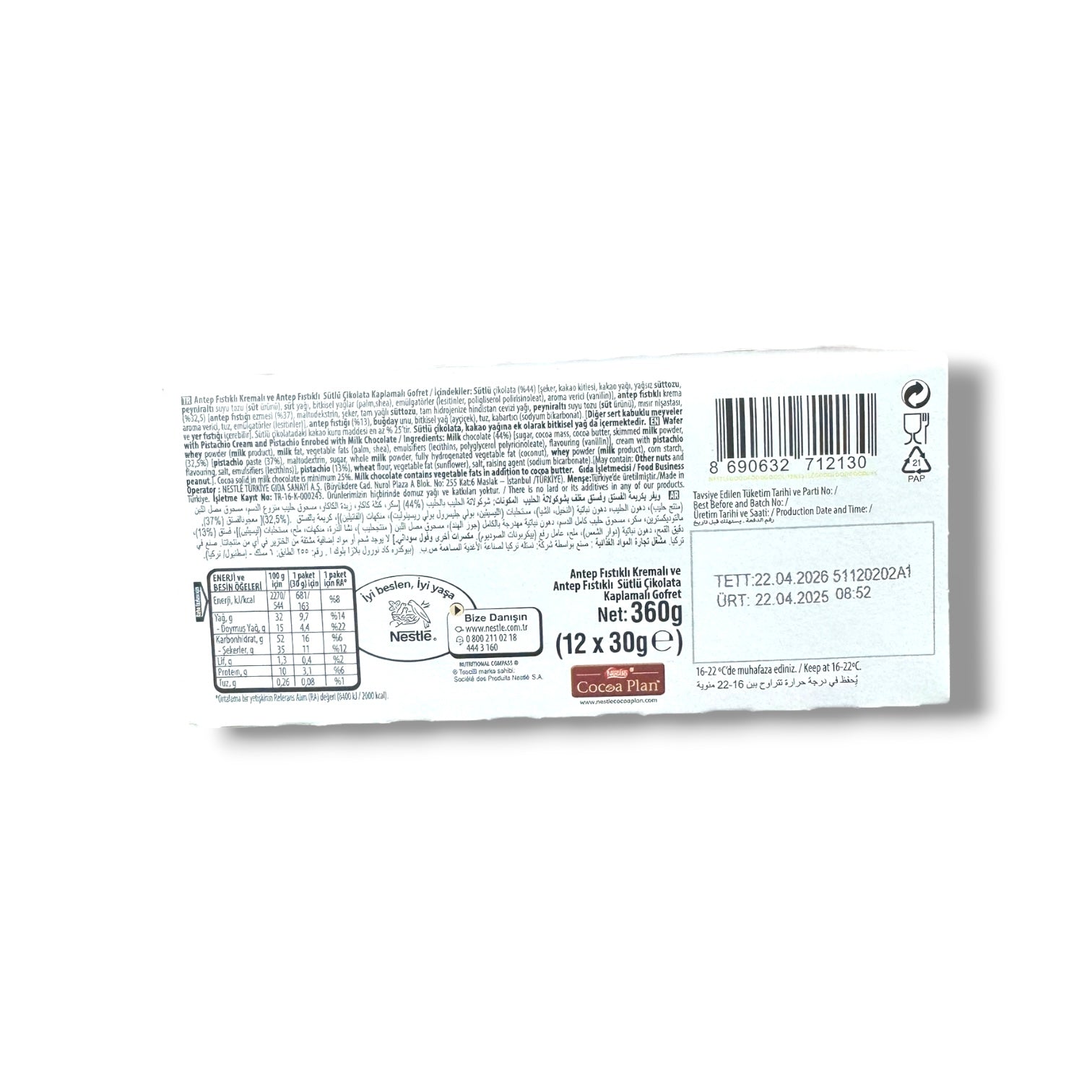 - High-Quality Ingredients: Made with premium milk chocolate and 25% pistachio cream, each wafer delivers a bold, authentic flavor.