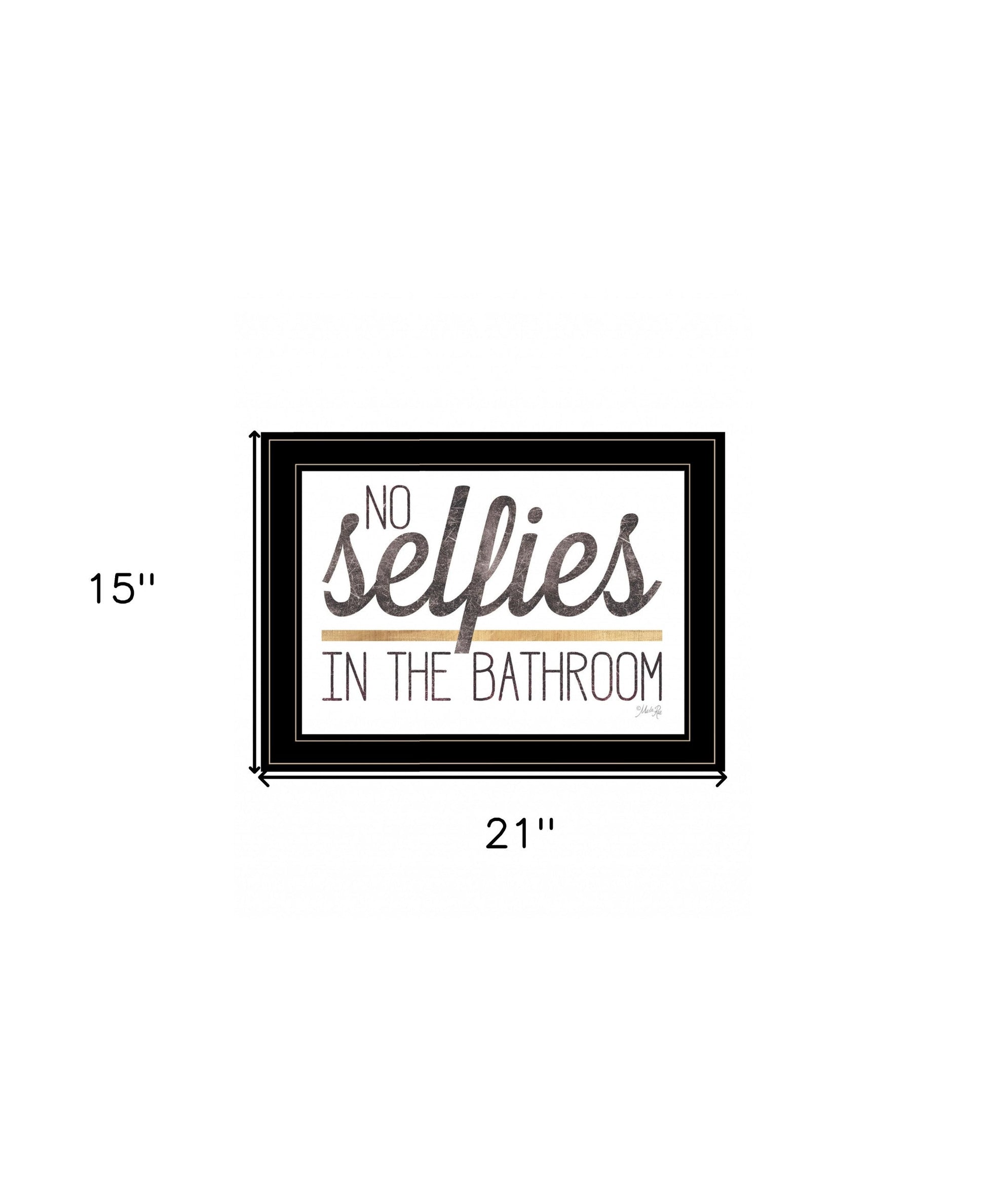 Unique and decorative, this no selfies in the bathroom 6 black framed print bathroom wall art will leave a lasting impression. This print is a visual artistic expression that allows you to decorate your space in style. Reproduced for you on wood, this hanging decorative accent will be a trendy and fashionable way to dress your walls in a rustic and modern farmhouse vibe. Hang on your wall to add some up to date fashion and decoration. Instantly liven up your space with this art that brings color and dimension to your walls. 15-inch H x 21-inch W x 1-inch D