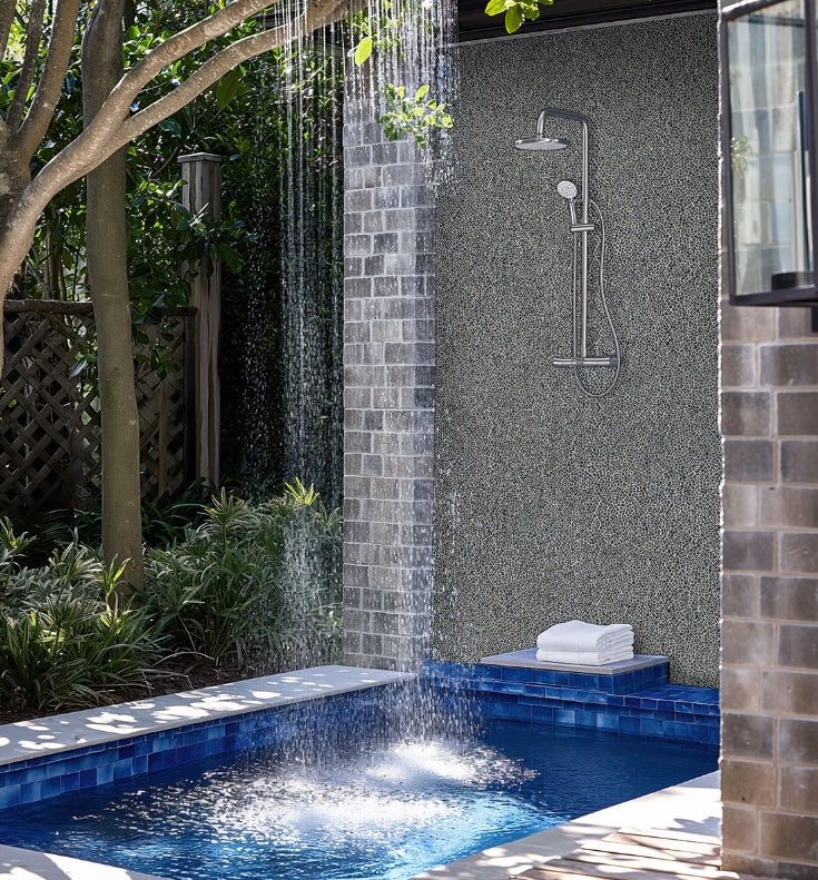 Noir Ash Mini Pebble marble, featuring a rich black tone, offers a tumbled finish that brings rugged elegance to any space. The mosaic's mesh-back design ensures easy installation, making it ideal for accent walls, backsplashes, and residential floors in both indoor and outdoor areas, including kitchens, shower areas, and more. Perfect for residential and commercial applications, this versatile tile seamlessly combines natural beauty with practical functionality.