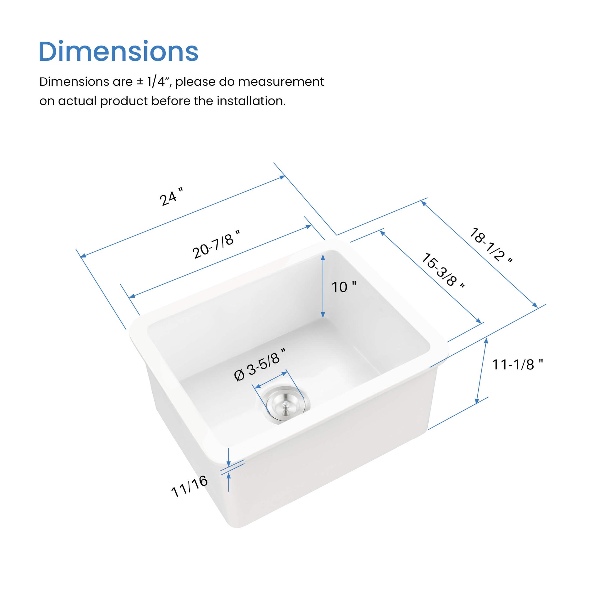 - Due to the firing process and the fact that fireclay sink is handcrafted, all dimensions may vary up to 3/8". Please measure sink on location before proceeding to countertop cut-out.