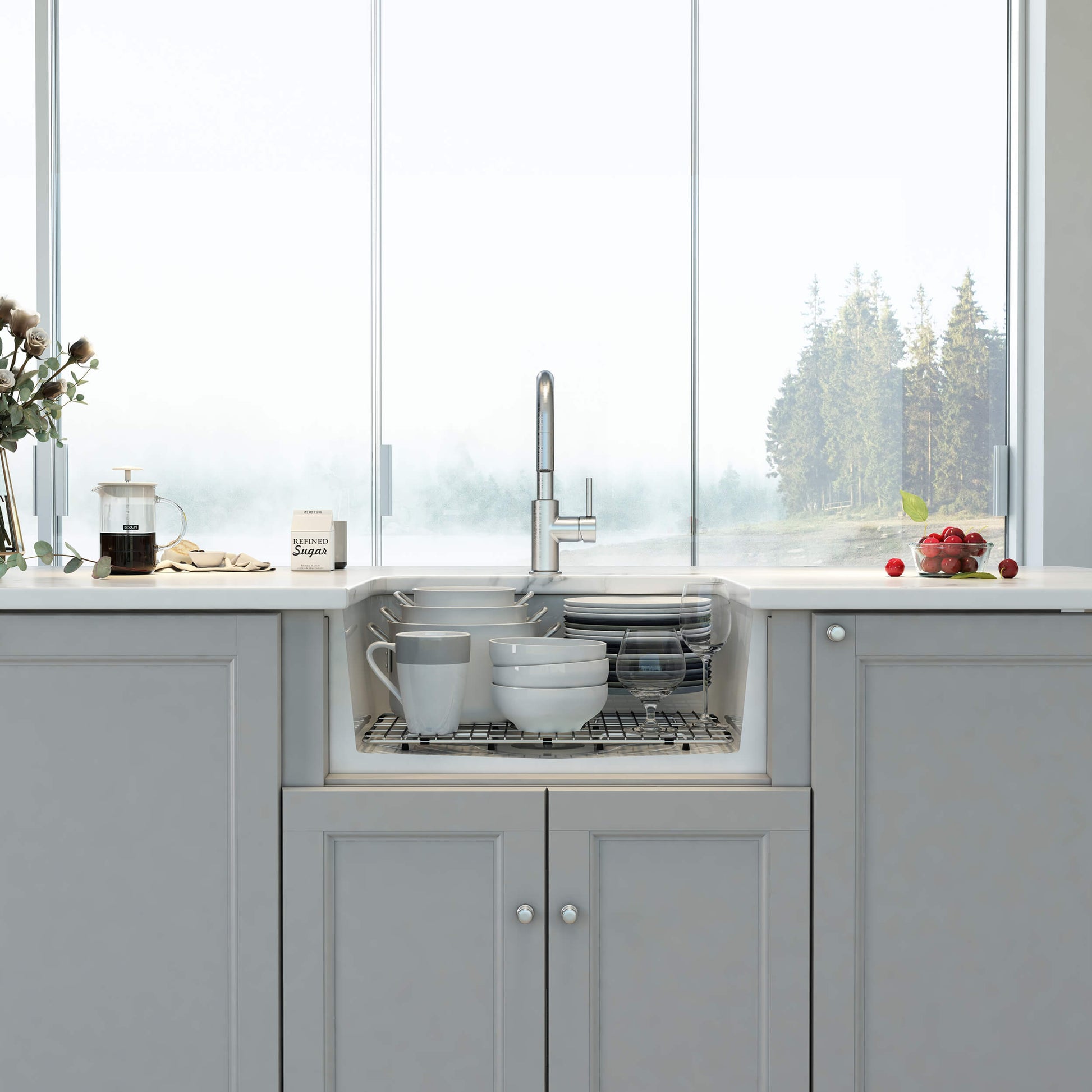 Crafted from the most durable material, this fireclay sink is baked at higher than 2,000° F and features a smooth, glossy surface that resists heat, stains, and chips. With the protective bottom grid and distinctive look, the arch fireclay sink is truly crafted to match your design and functional desires.