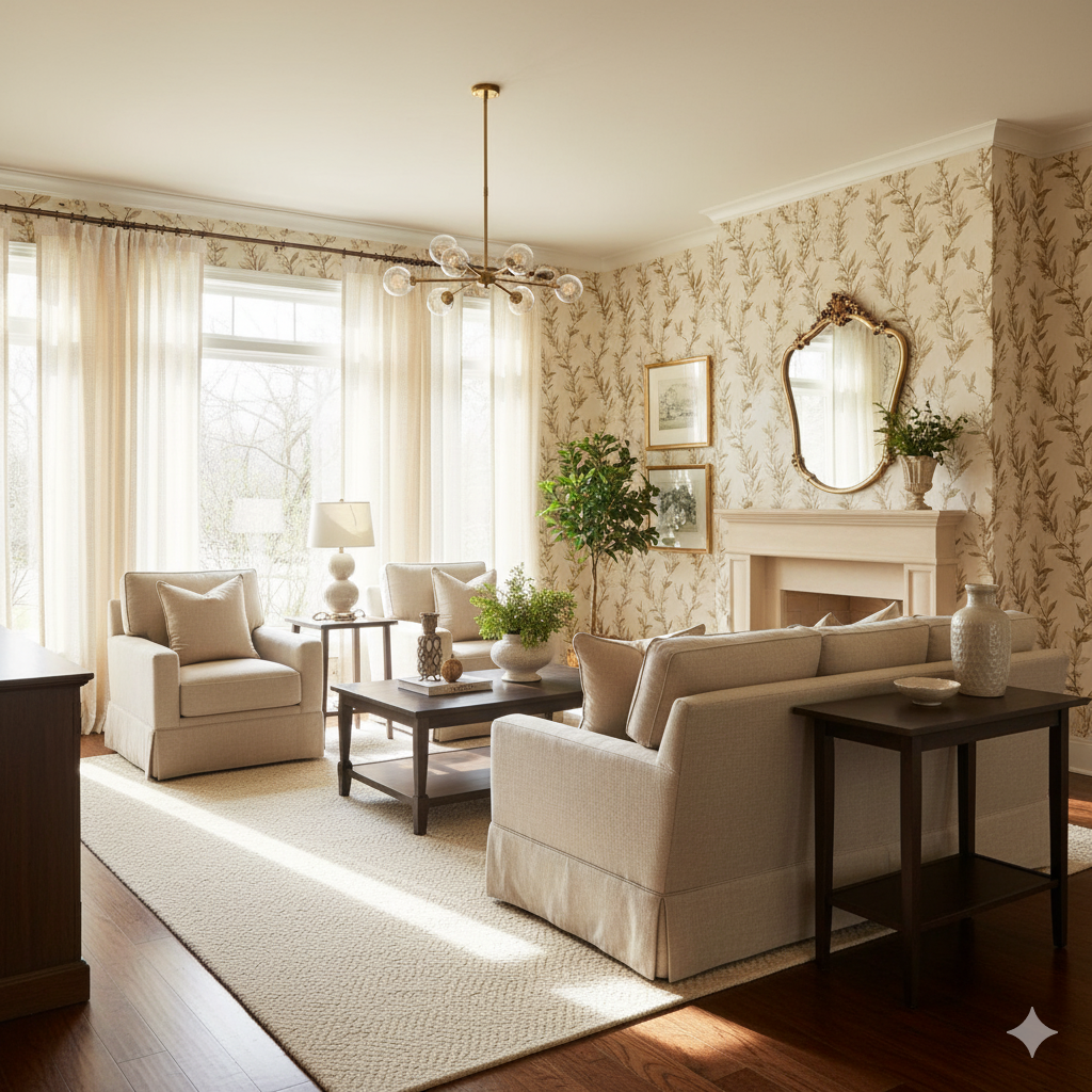"Olive Trails" is a refined, olive-branch motif rendered in warm golden sepia over a soft ivory canvas. The repeating vertical vines carry an elegant cadence and subtle movement, perfect for rustic kitchens, Mediterranean-inspired lounges, or serene spa bathrooms. The neutral palette and classic sketchwork make it effortlessly versatile and timeless.