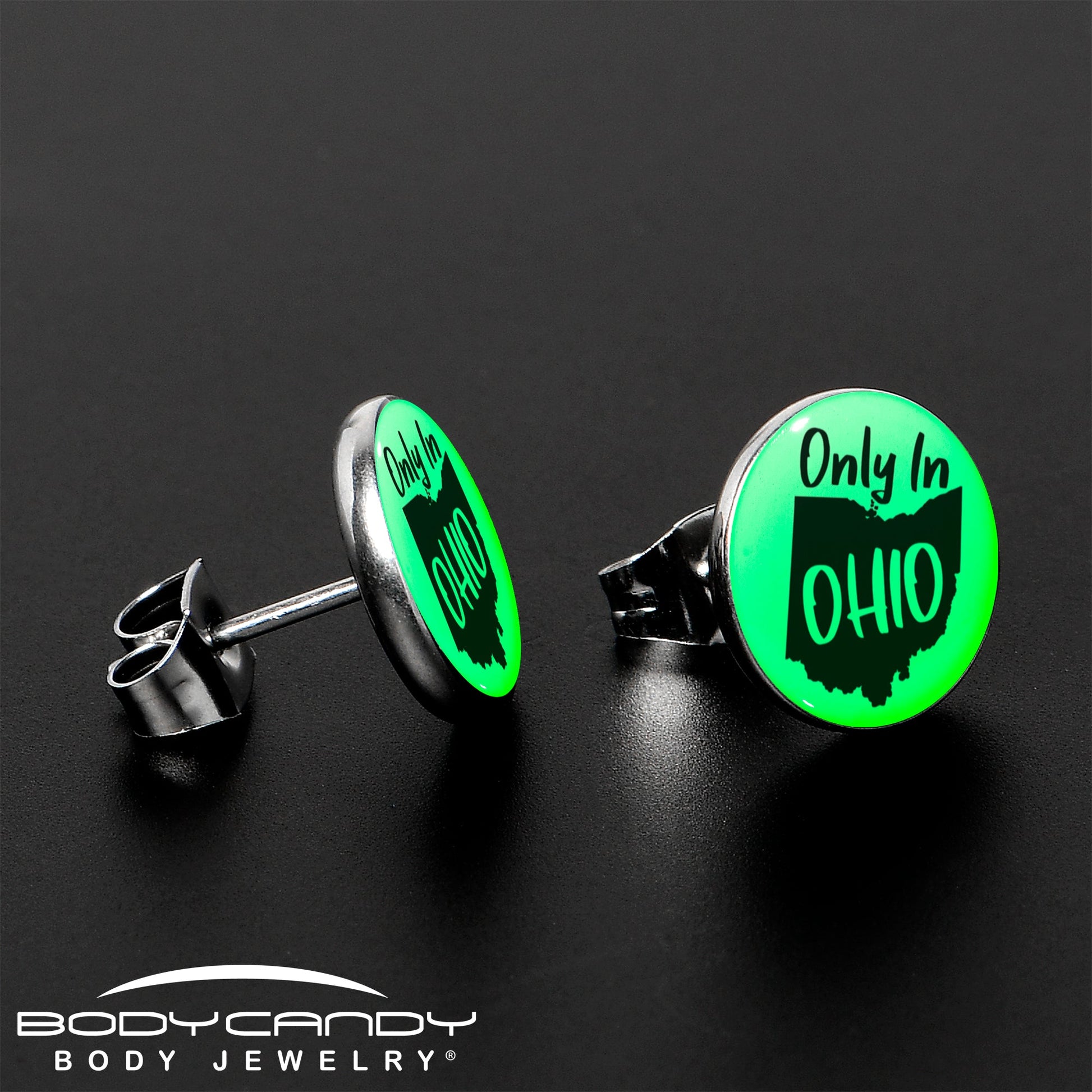 Hypoallergenic jewelry for sensitive skin.Only in Ohio Glow in the Dark Stud Earrings