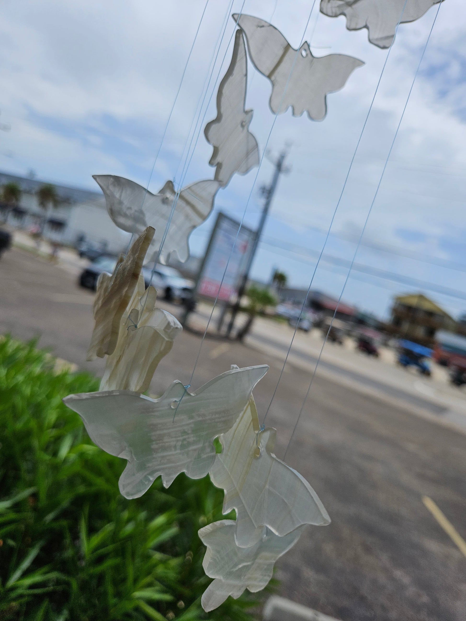 This unique Onyx Butterfly Windchime will add a touch of whimsy to any garden or outdoor space. The beautiful white onyx is both elegant and playful, and the butterfly design will delight anyone who sees it. Bring some enchantment to your surroundings with this charming windchime!