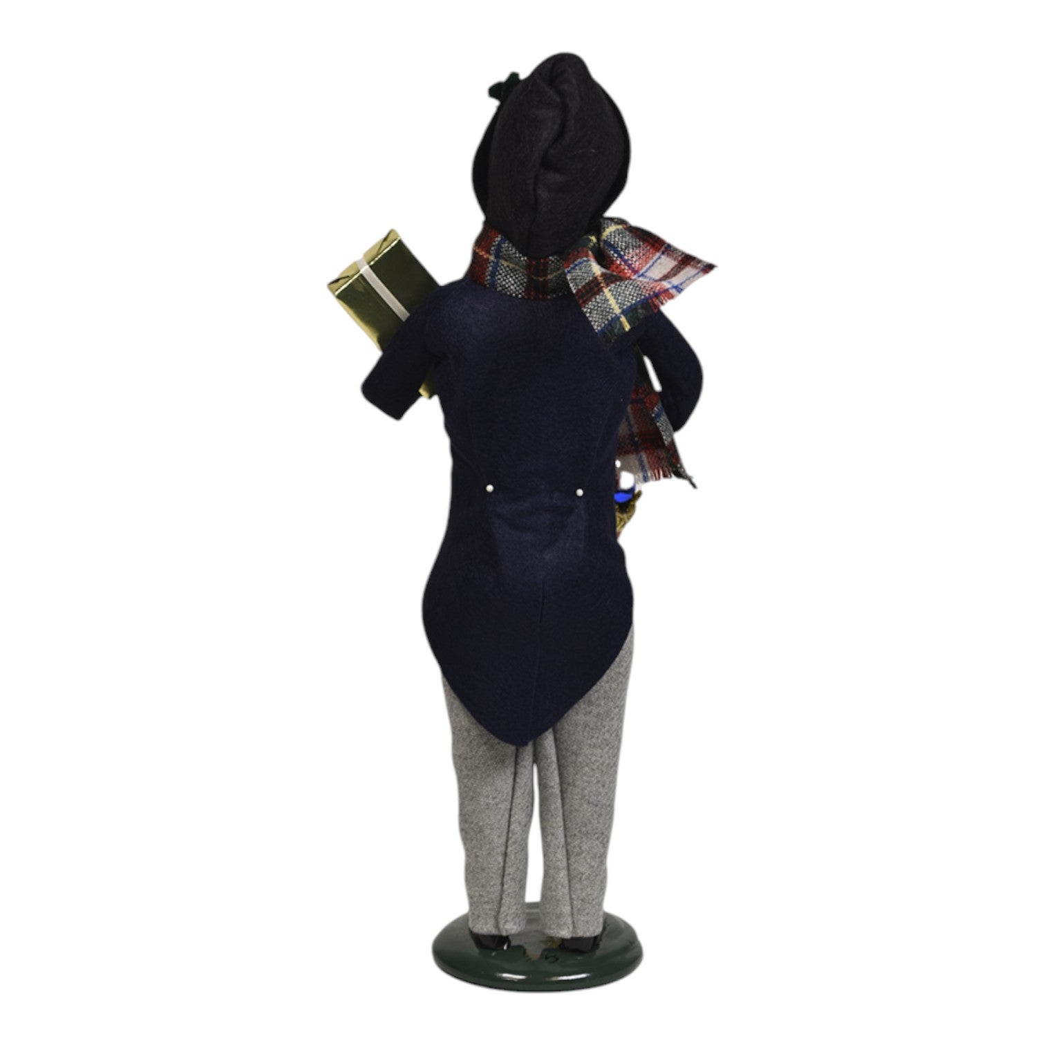 Celebrate the warmth and joy of the holiday season with the delightful Byers Choice Man Ornament Figurine! Standing at a charming 13 inches tall, this beautifully crafted collectible features a dapper gentleman dressed in winter attire, complete with a plaid scarf and a festive hat. He holds a sparkling gift in one hand and a nutcracker in the other, making him a perfect representation of holiday cheer and the spirit of giving.