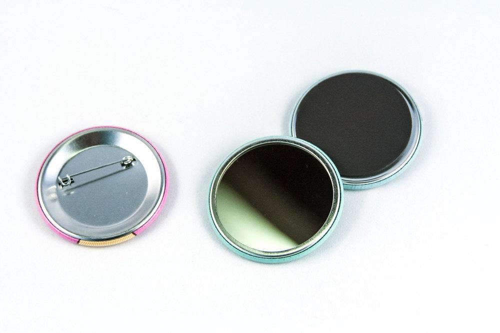 • Choose between fridge magnet, pinback button, or pocket mirror.