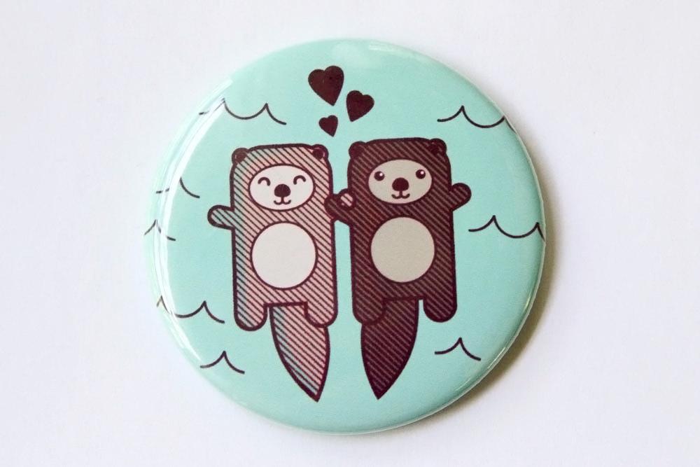 These otter buttons make awesome stocking stuffers, gifts, party favors, engagement or wedding gifts, or save the date buttons. Design features two cute otters holding hands.