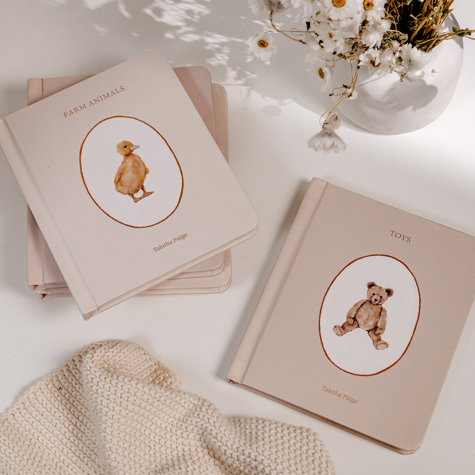 Designed by a professional watercolor artist and licensed speech therapist, Our Little Library features five board books that feature charming images and foundational vocabulary that will help you build your child’s vocabulary. The durable materials and small book size also make them perfect for your baby’s little hands.