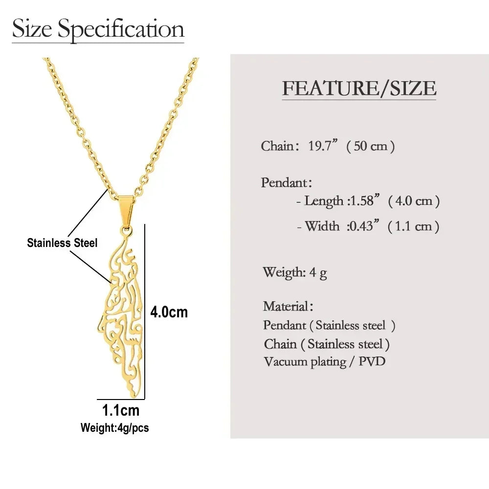 Palestine Map Necklace - Stainless Steel Pendant - Hypoallergenic & Dainty