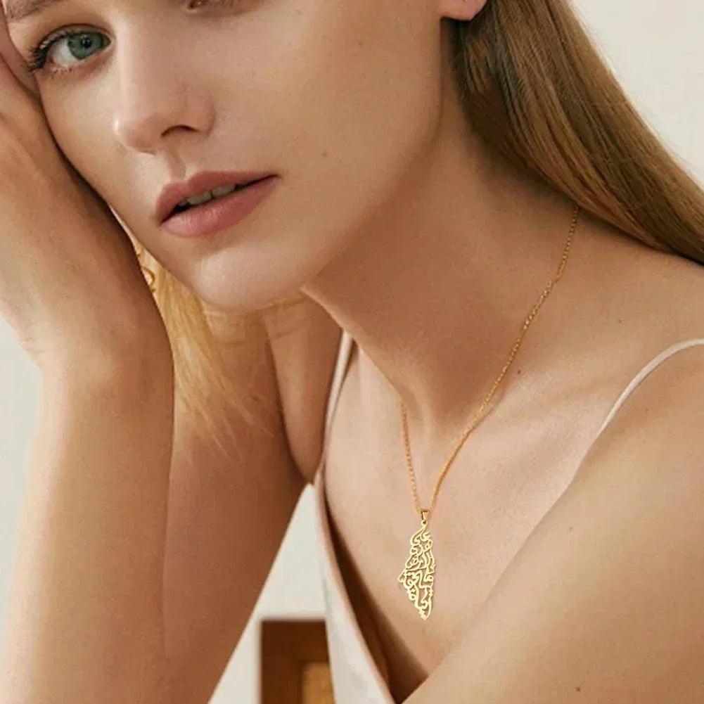 Celebrate heritage and solidarity with this dainty yet powerful Palestine map pendant necklace, crafted from high-polished stainless steel. Its hollow-out design and lightweight comfort make it a meaningful everyday piece, while its tarnish-proof and hypoallergenic properties ensure lasting wear.