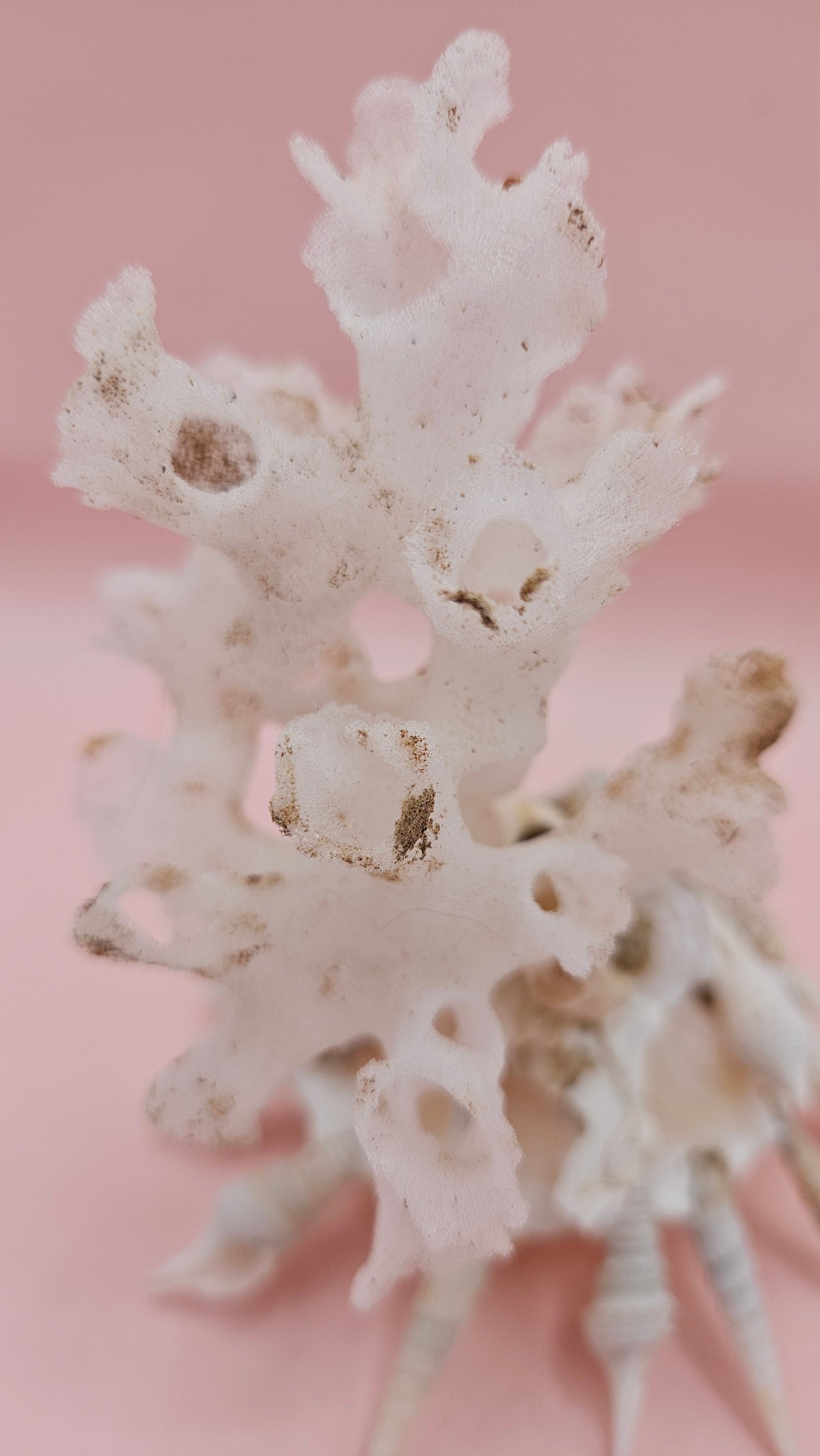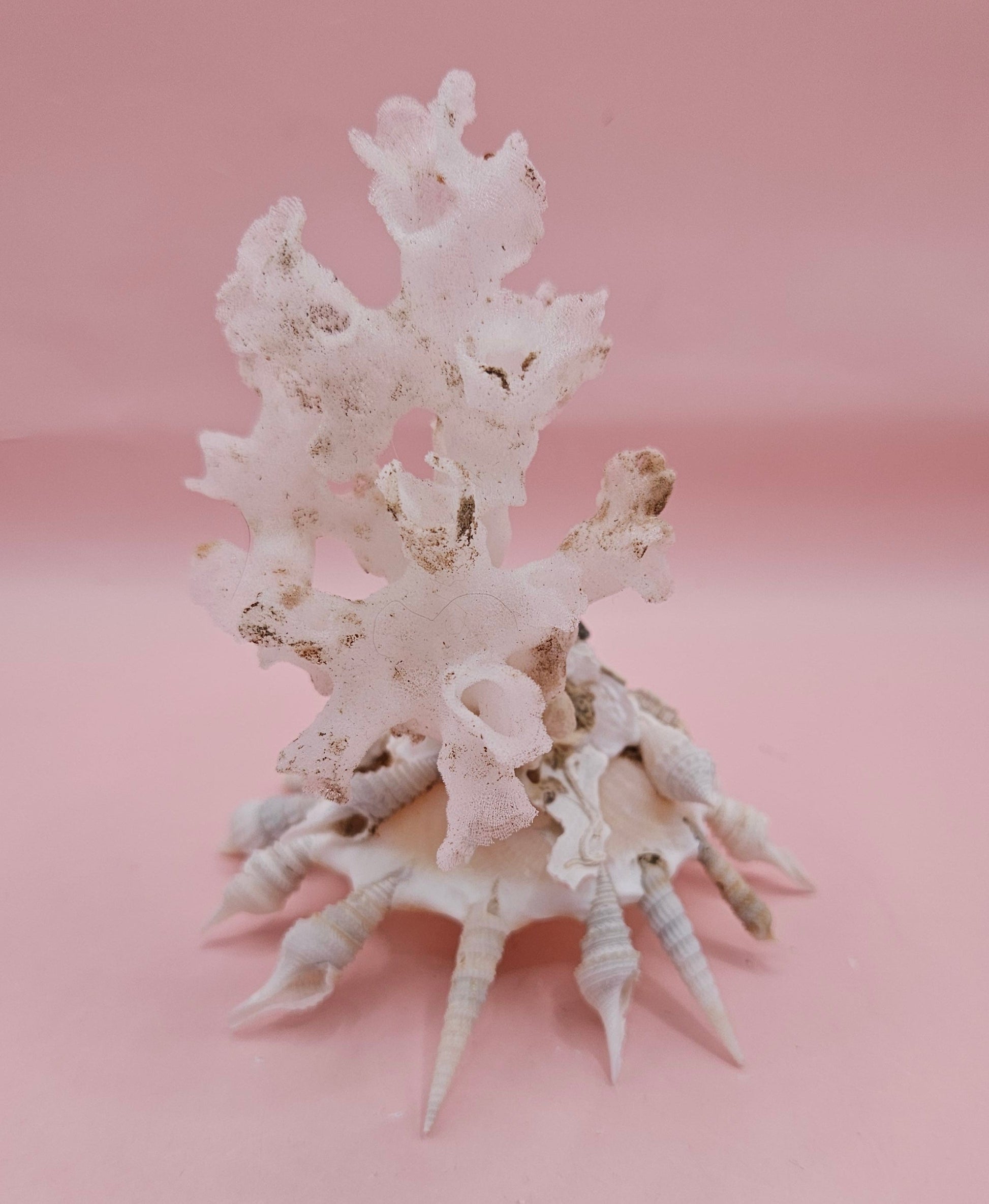 Bring a piece of the ocean's artistry into your space with this unique shell and coral-topped display. Featuring a shell adorned with a coral structure, this piece offers striking contrast and organic charm—perfect for a coastal-inspired shelf or coffee table centerpiece.