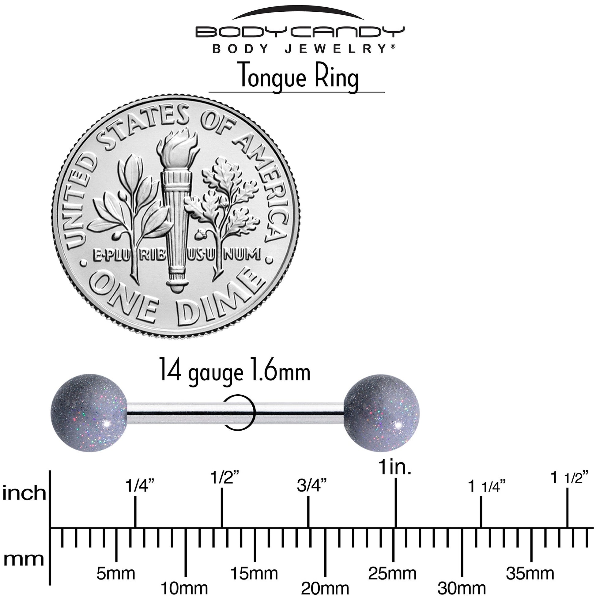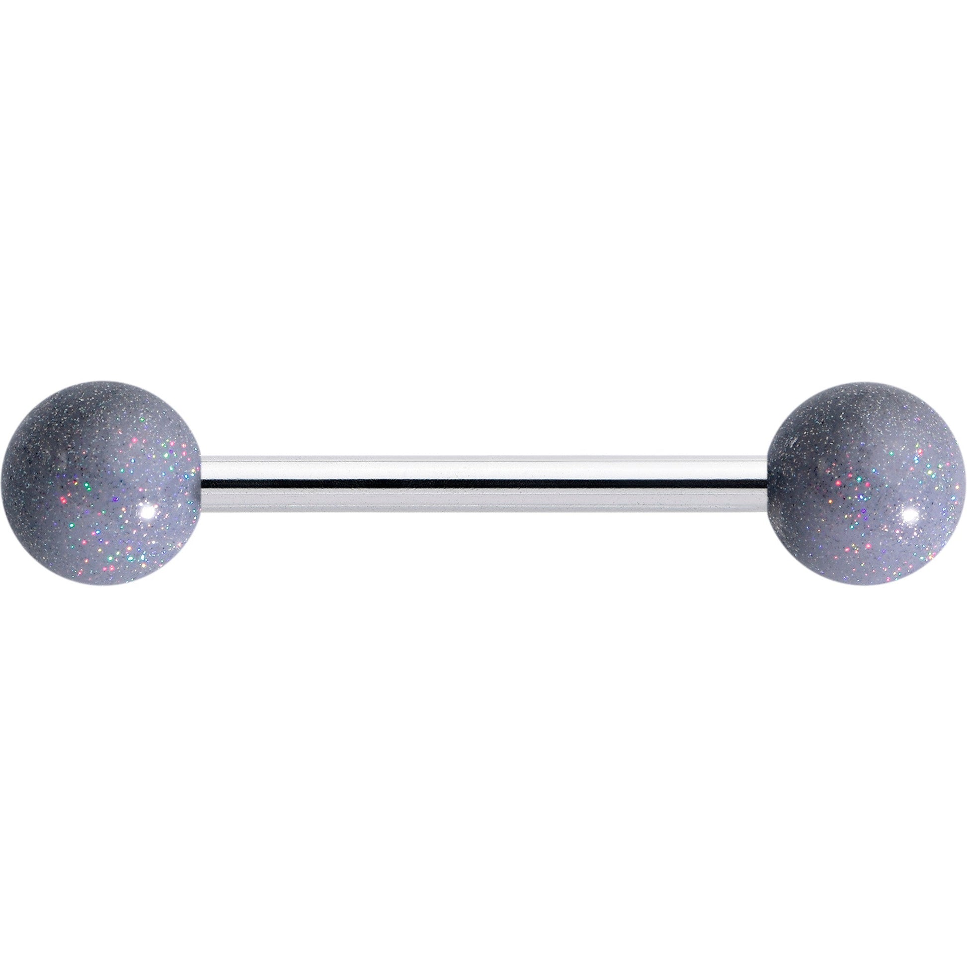 Add some shimmer to your style when you are rocking this 14 gauge tongue ring. It is made with a 5/8 inch 316L surgical grade stainless steel straight barbell with 5mm ball ends. It features pastel grey acrylic ball ends with a shimmer effect that is sure to get noticed. Let a new day dawn for your look when you're rocking this shimmery grey tongue piercing jewelry.Specifications