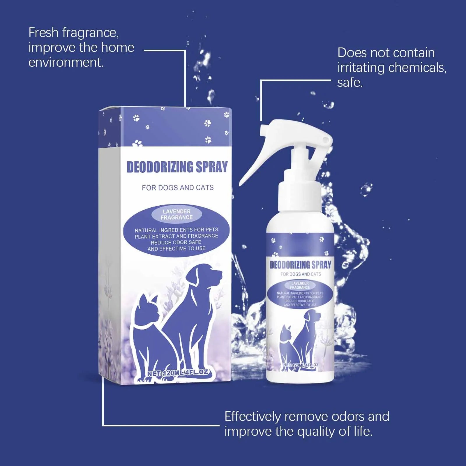 Pet Deodorant, Remove Pet Odor, Fresh Lavender Scented Pet Deodorant Spray 120ml