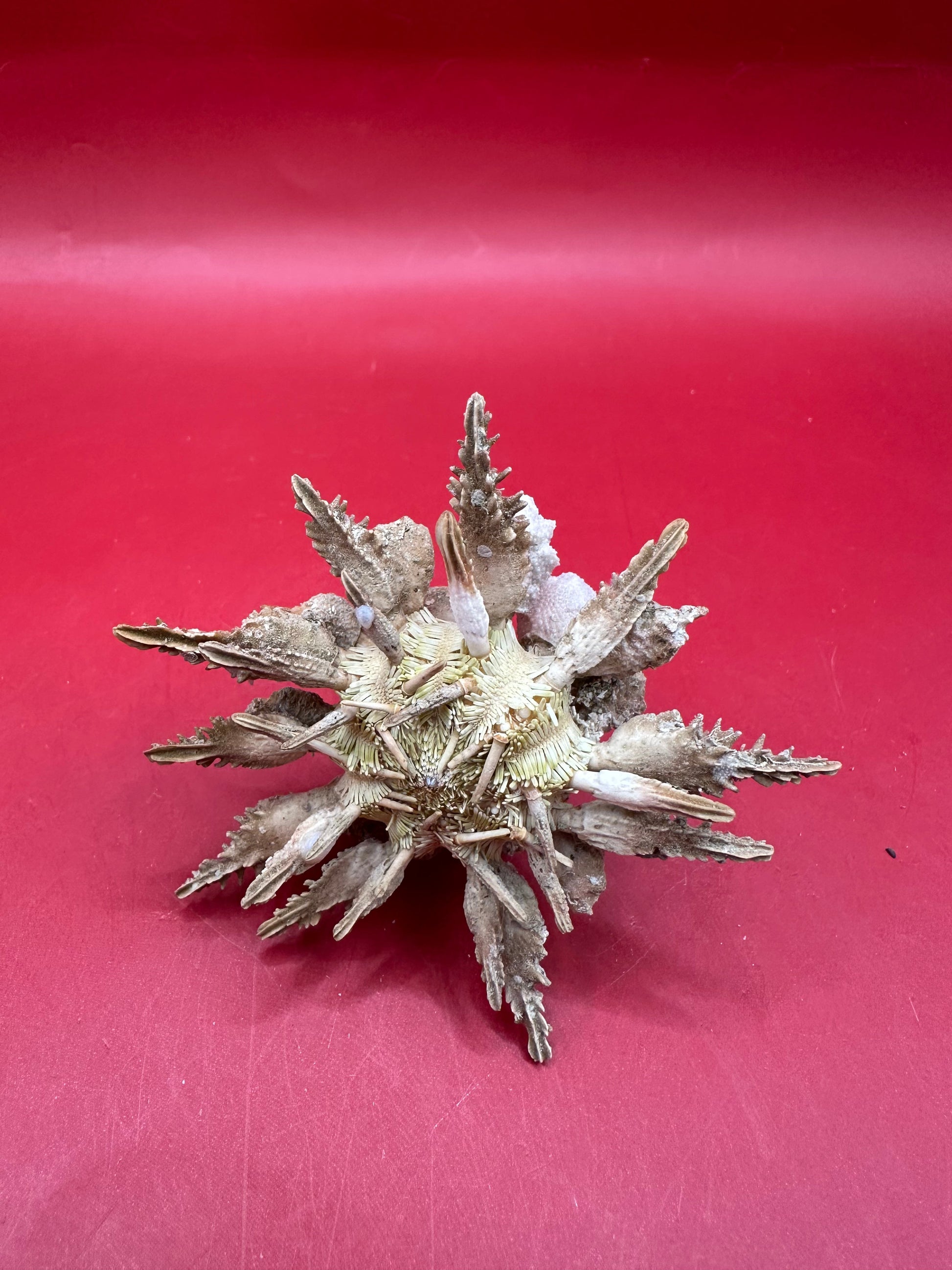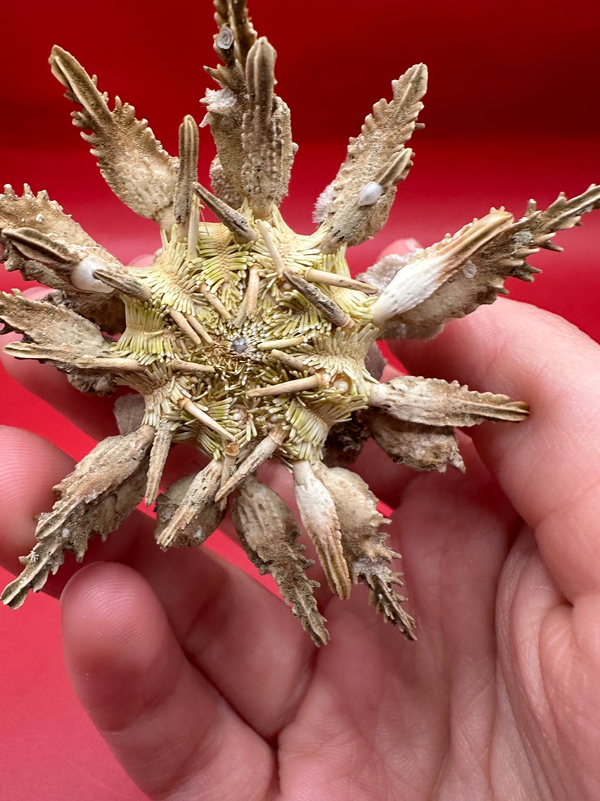 A rare and eye-catching echinoderm, this pine tree urchin adds natural intrigue to any marine collection or coastal display.