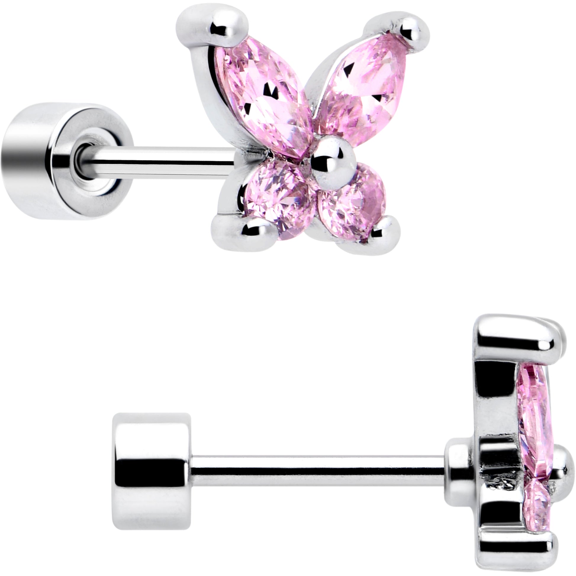 Pink CZ Celestial Butterfly Flat Back Stud Earrings - 3 Pairs