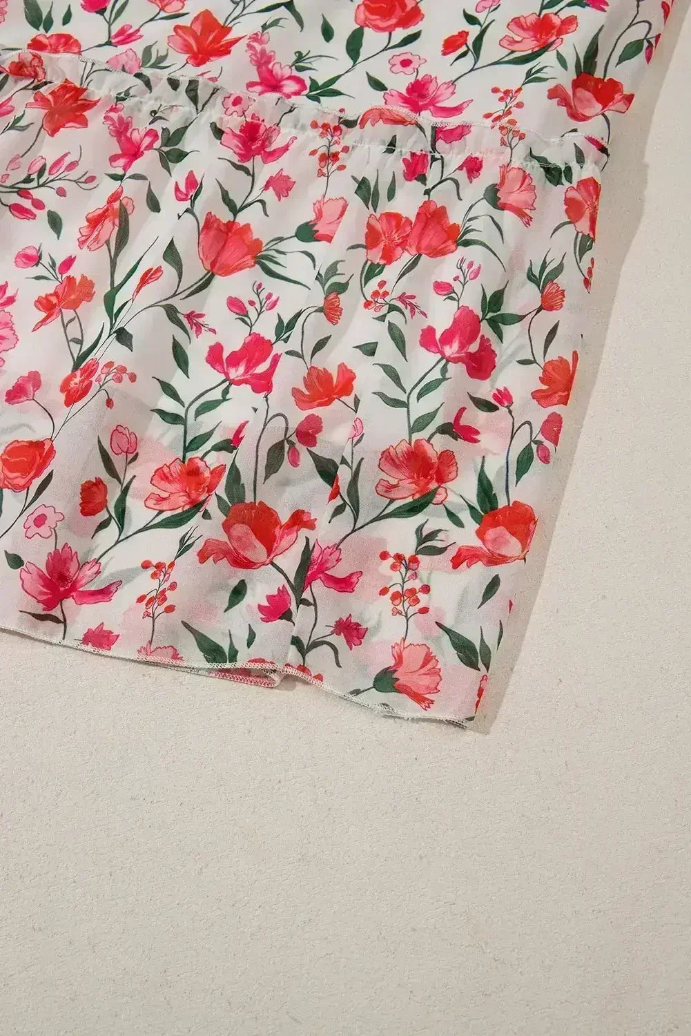 Pink Plus Size Floral Square Neck Puff Sleeve Ruffle Maxi Dress