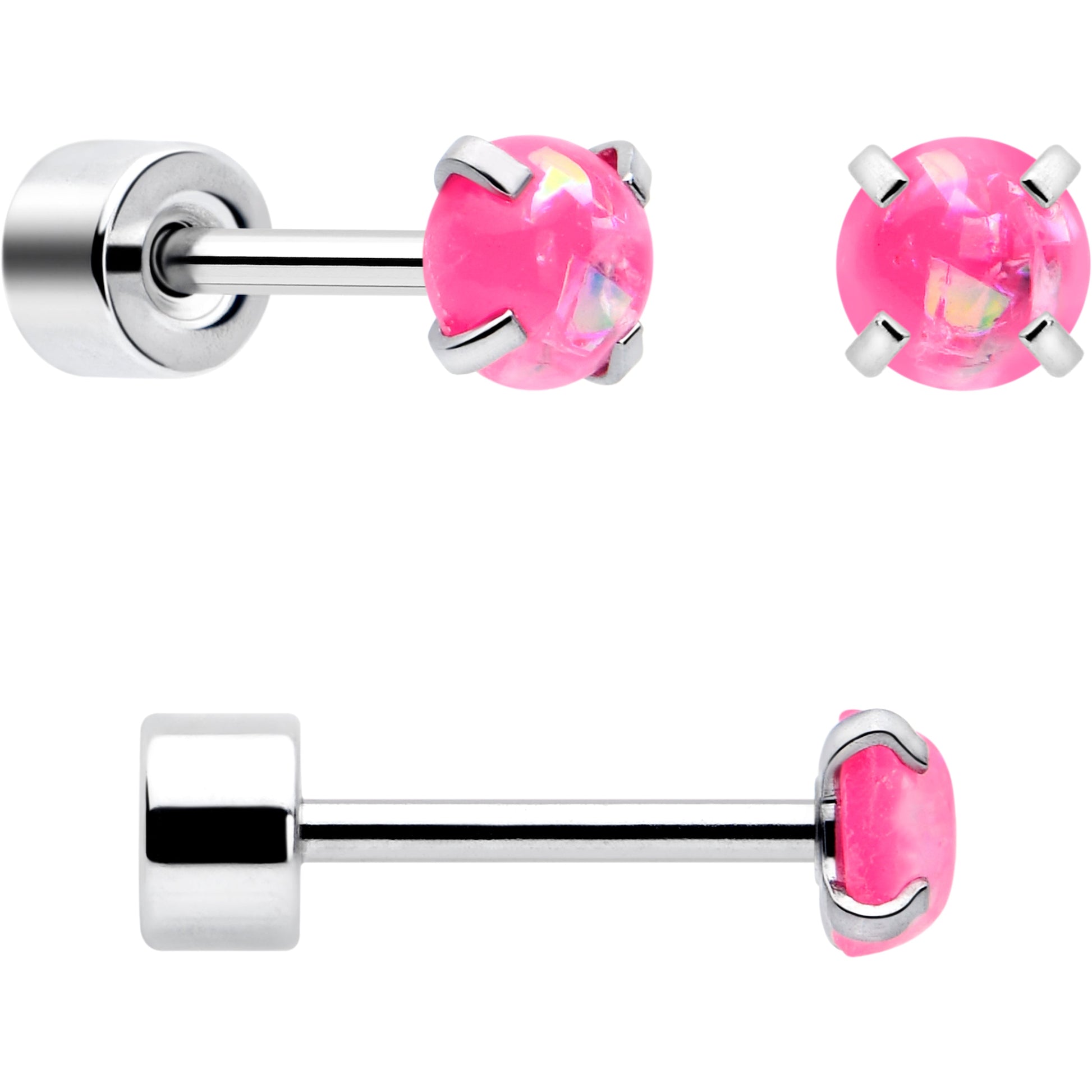 20 Gauge (.8mm), 1/4" (4mm), 316L Surgical Grade Stainless Steel, Synthetic Opal 3mm 4mm and 5mm Tops, Screw Back, Flat Back Earrings, Set of 3 Pairs