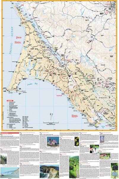 This map has something for everyone, it includes detailed descriptions of 21 hiking and biking routes scattered throughout the Point Reyes area, along with 80 individual trail descriptions.