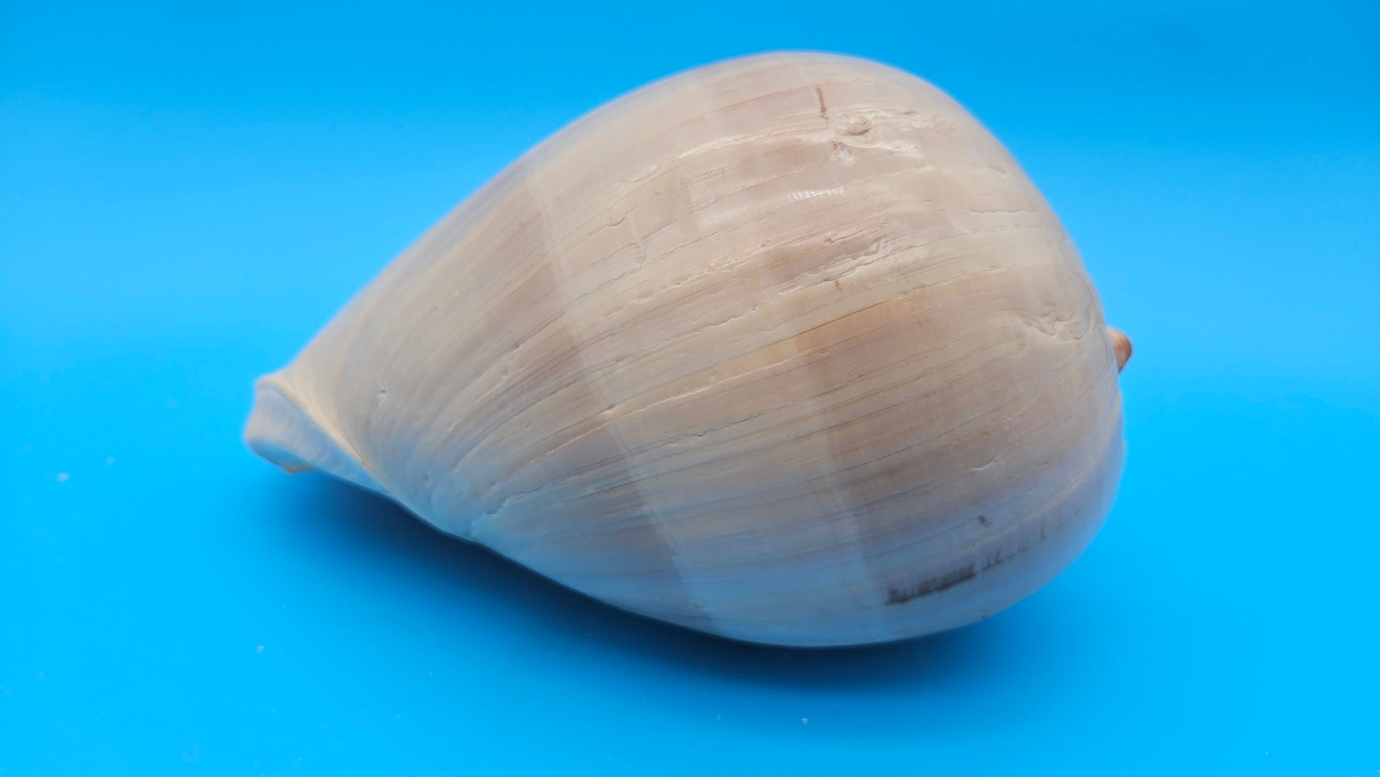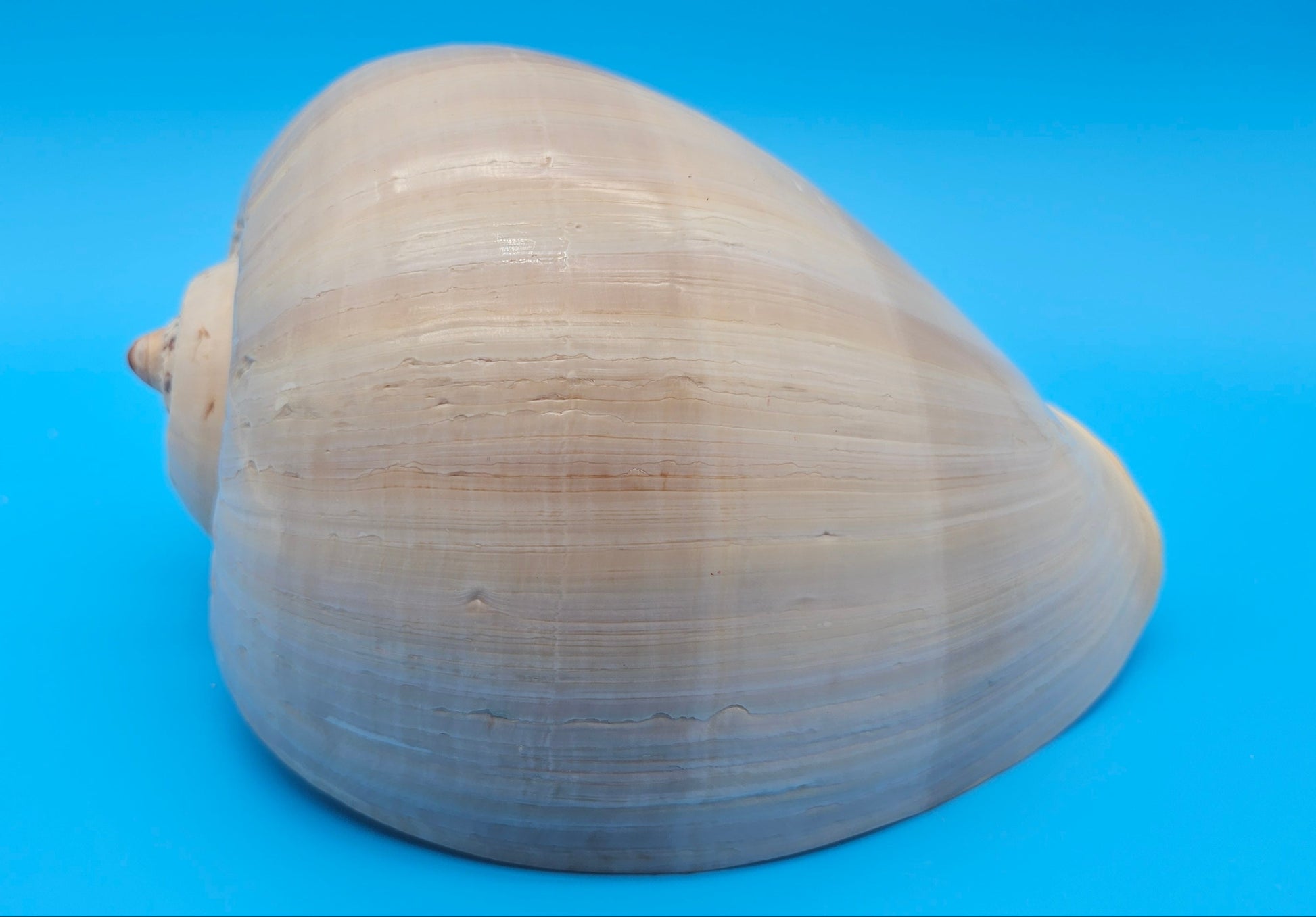 This polished Crown Melon shell is a true showstopper with its smooth, rounded form and subtle natural striping. Its soft peachy beige tones and glossy finish make it a beautiful accent for coastal tabletops, bookshelves, or entryway displays. The crown-like spiral adds a touch of elegance to its bold silhouette.