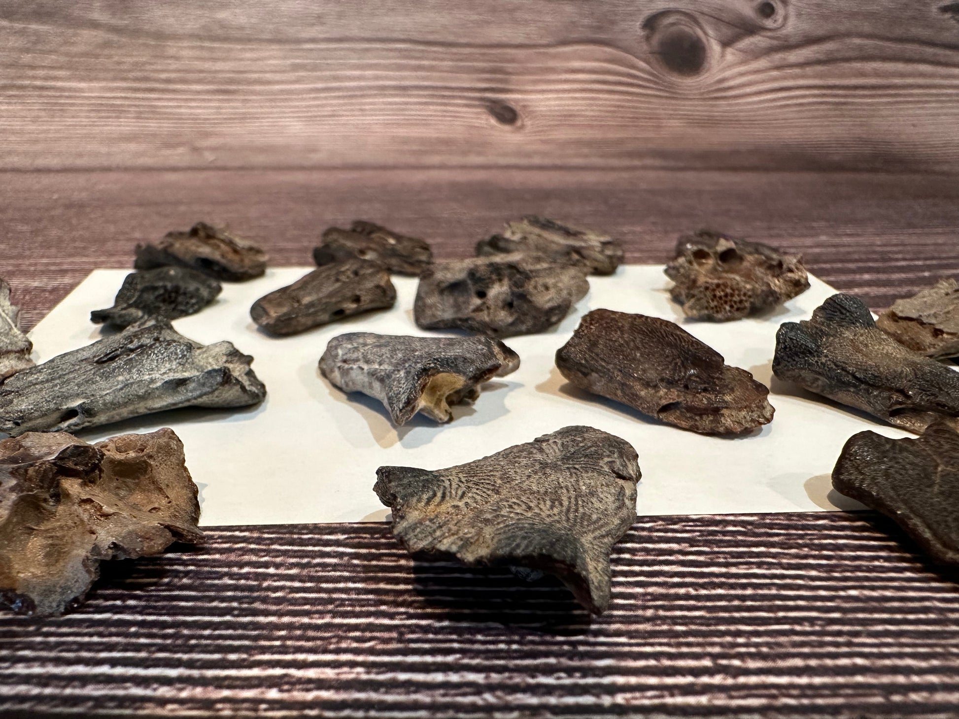 Discover a unique and intriguing piece of marine history with our Port Aransas Fossilized Sea Robin Neurocranium. Measuring approximately 1", this fossil offers a fascinating glimpse into ancient sea life. Each specimen is carefully preserved and comes as a one-of-a-kind collectible, with a randomly selected piece ensuring a truly special find.