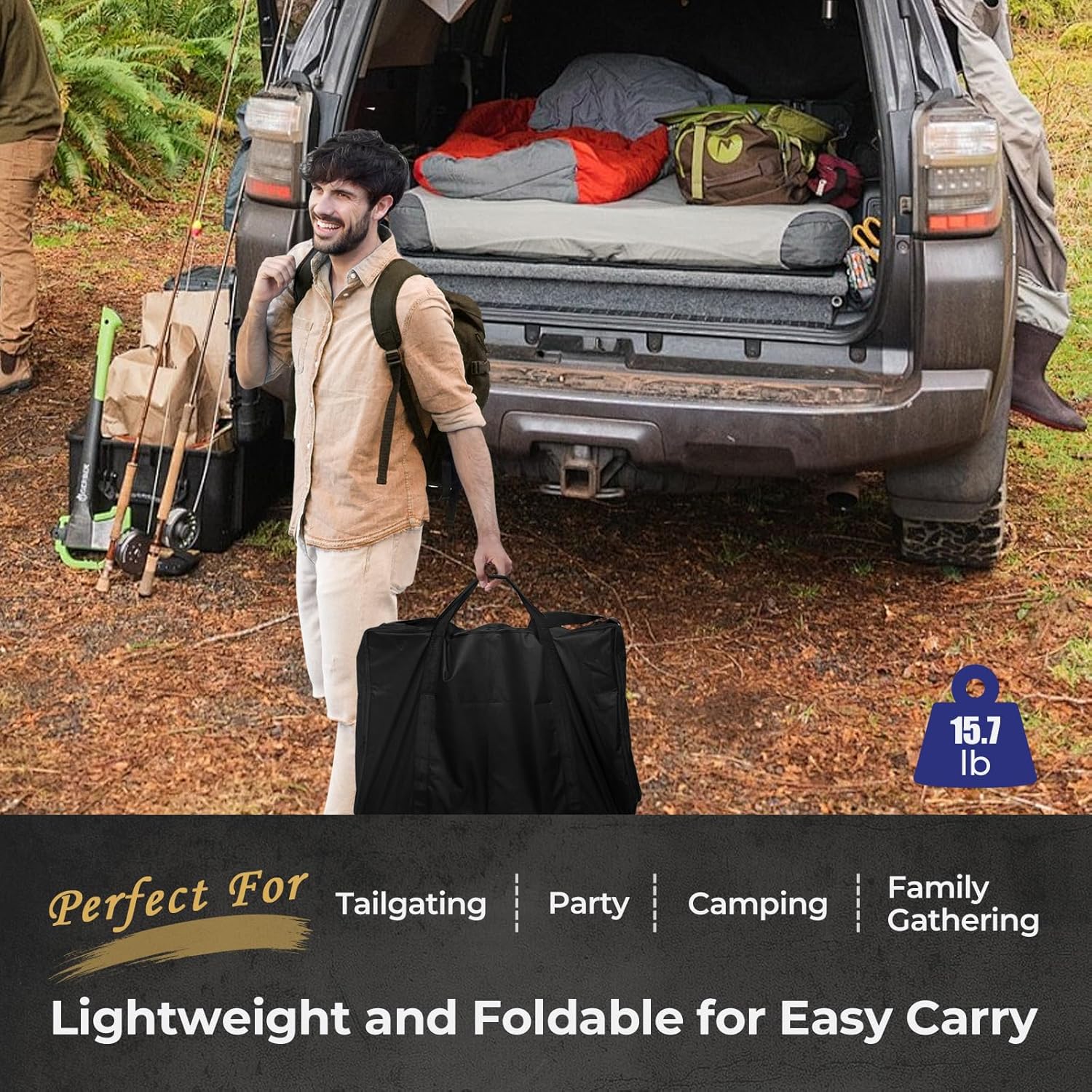 - Foldable BBQ Table: The portable grill table can be folded for easy storage and transport. It weighs just 15.7lb and comes with a convenient storage bag, making it incredibly easy to carry for tailgating, camping, or beach parties.