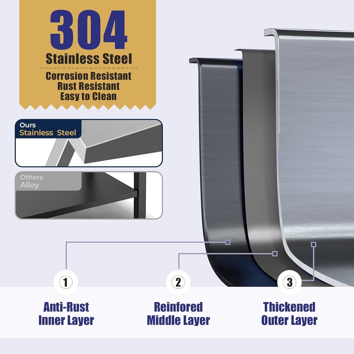 - Sturdy and Reliable: Made from durable 304 stainless steel, the griddle stand can resist corrosion and heat for long-lasting performance. It supports up to 380 lbs, providing stable support for heavy equipment. The smooth surface is easy to clean.